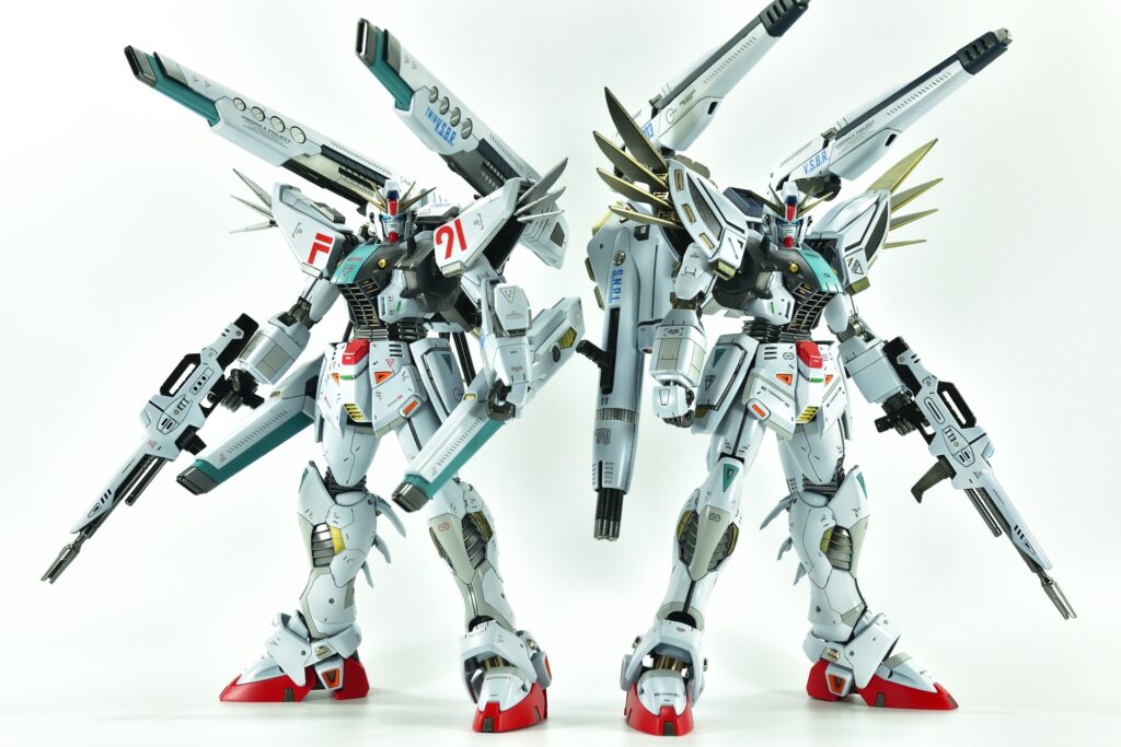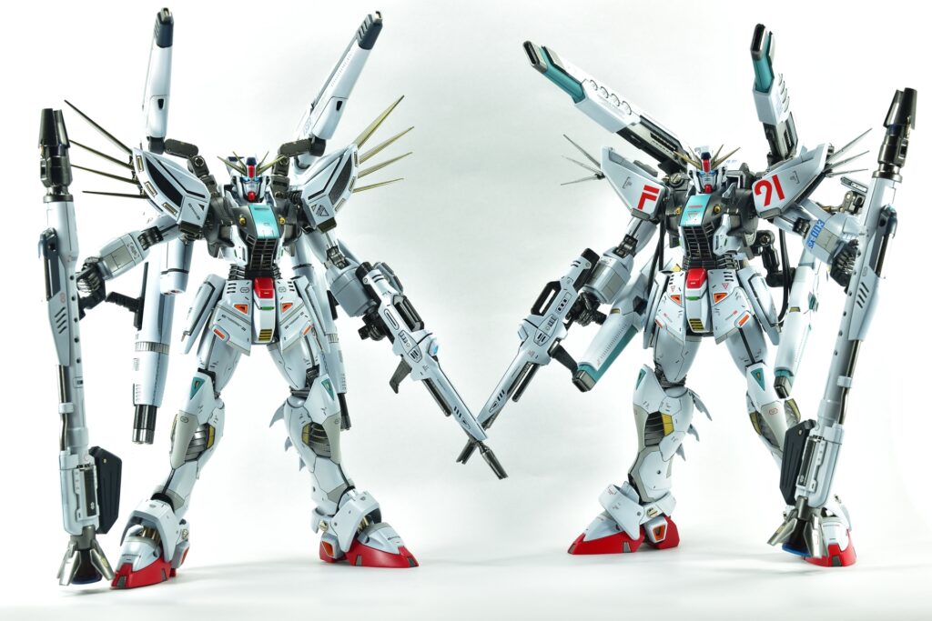 異なる仕様のF91を2機同時に作成することで、それぞれの魅力を引き出しつつ、統一感のある仕上がりを目指しました。細部までこだわったディテールと塗装の工夫により、プレミアム感のある作品に仕上がったと思います。詳細画像とともに、ぜひご覧ください!