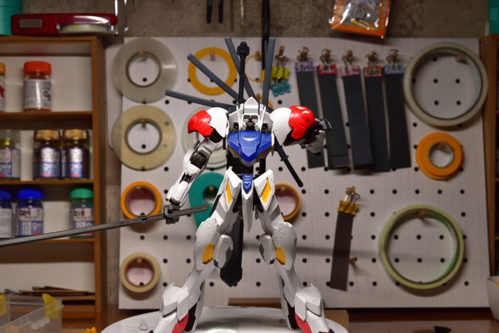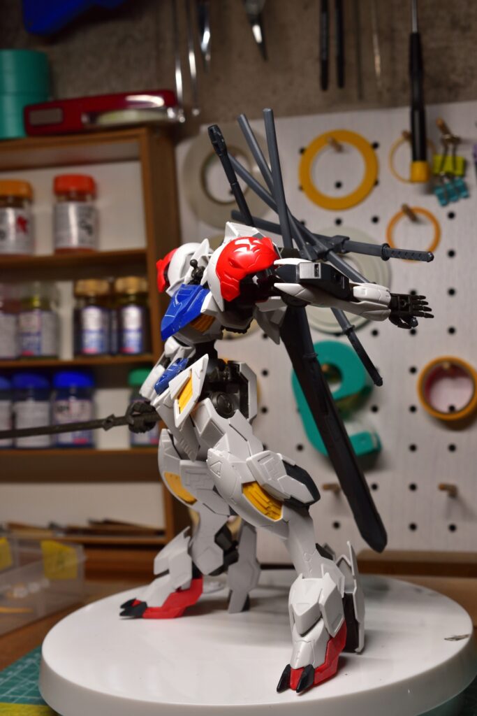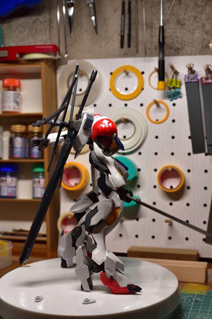 特に、刀のデザインに注力し、ムラマサブレードの形状を忠実に再現することで、バルバトスルプスに新たな魅力を加えました。仕上がり後は、メカニカルなディテールを強調し、武装感が溢れる迫力のある作品に仕上がりました。