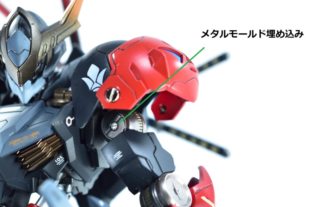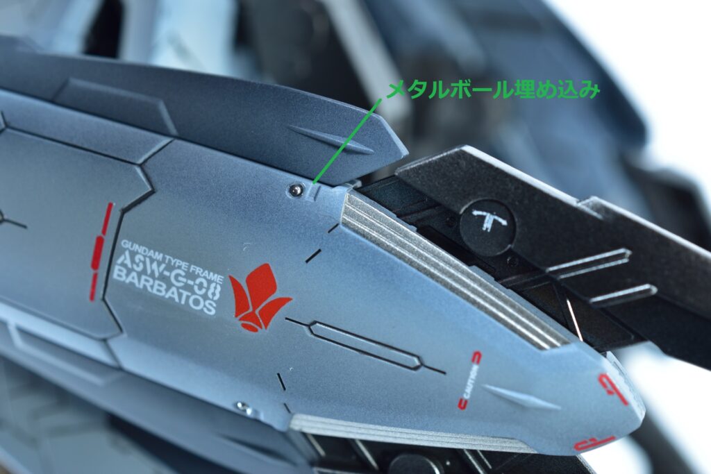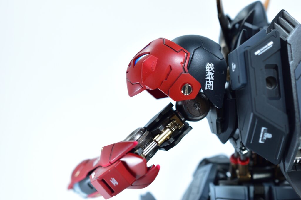 左右非対称のカラーリングにすることで、バルバトスルプスの大胆なデザインが際立ちました。特に持ち腕の外装を赤にすることで、デザインにアクセントを加え、視覚的にインパクトを与えました。