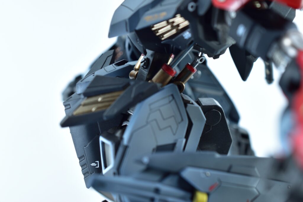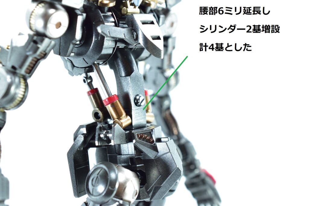 胴体部にシリンダーを2基増設することで、メカニカルなディテールが加わり、全体的な強度とリアルさが増しました。この追加によって、機体の背面に立体感が生まれ、より戦闘的な印象を与えることができました。