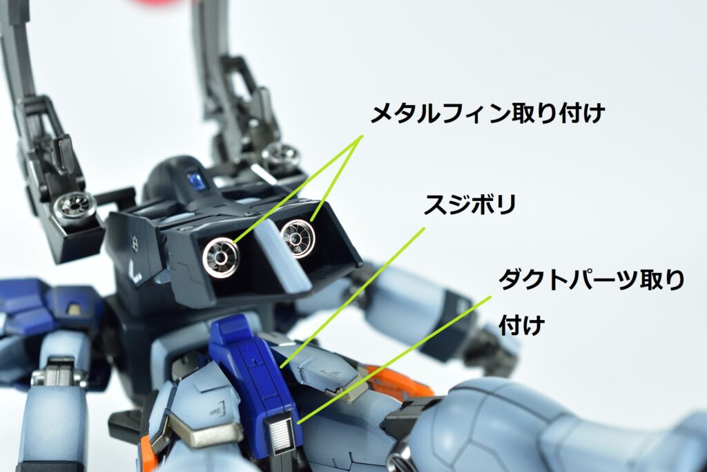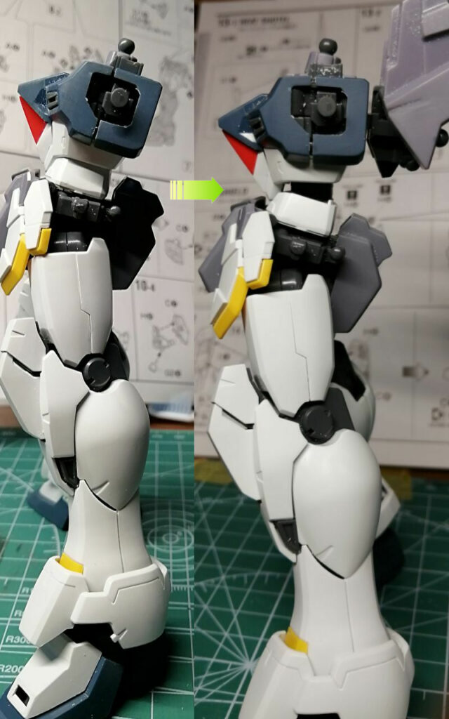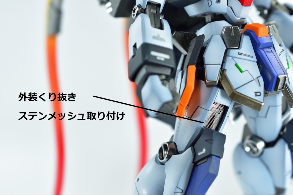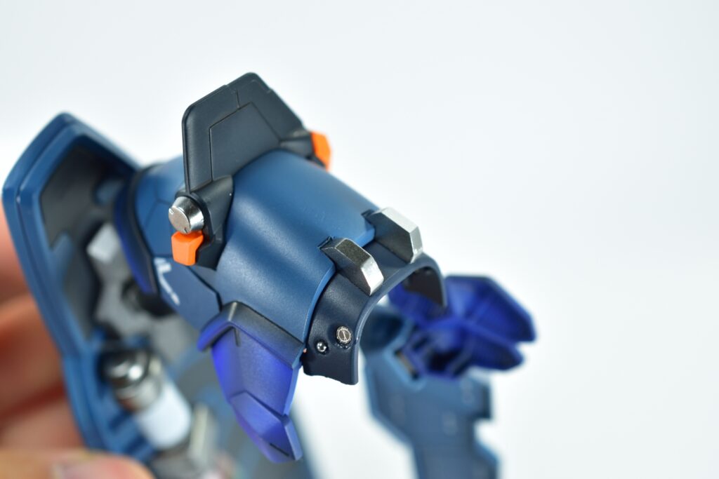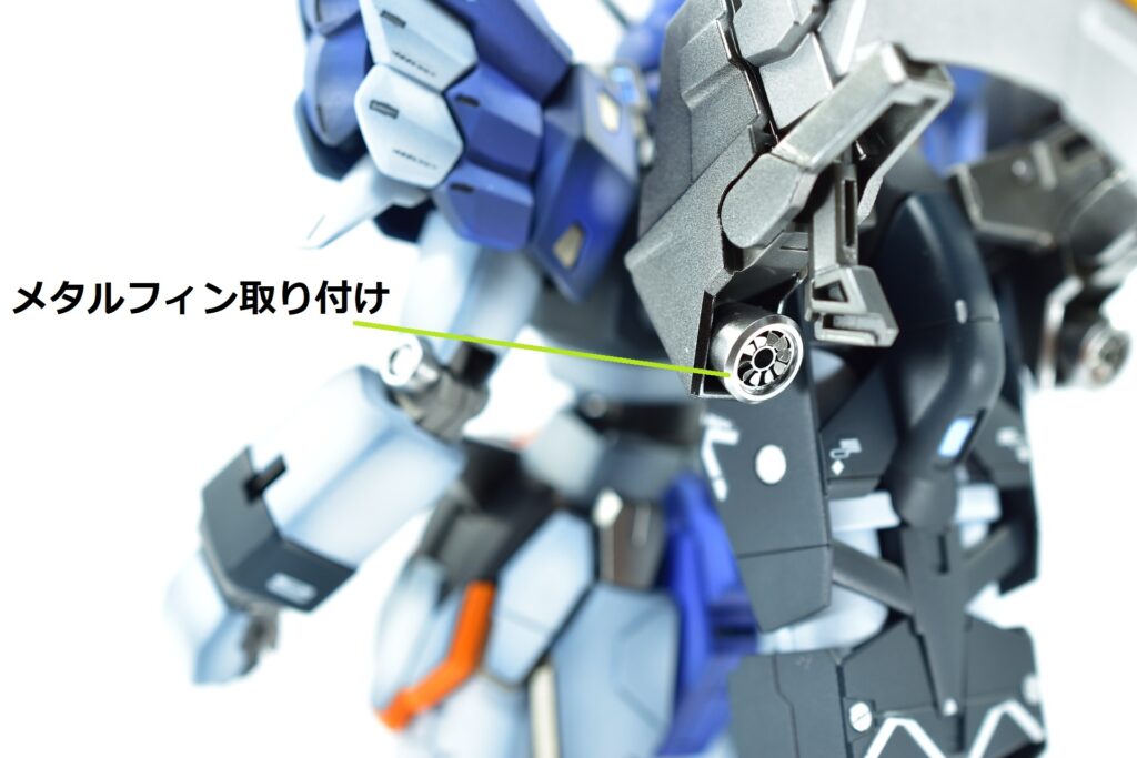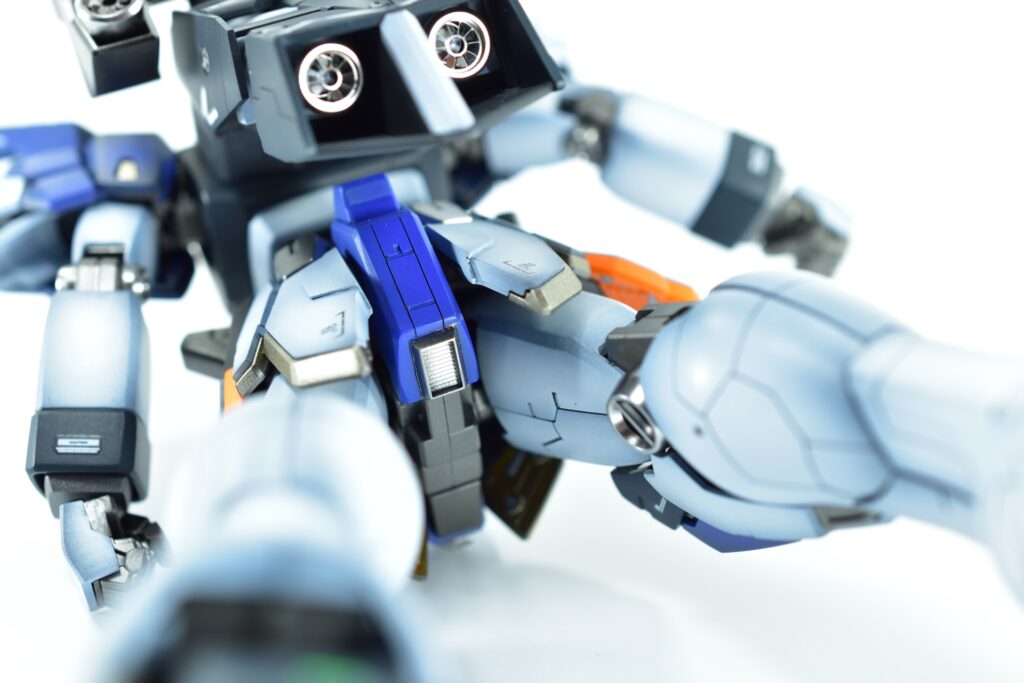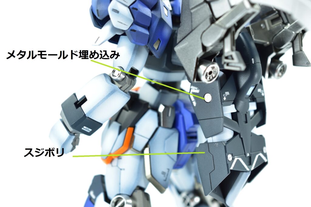 肩アーマーはエッジ出しを行い、エポキシパテで若干拡大。さらにアーマディロ装備の肩アーマーは拡大に伴い干渉部分を調整。ネオジム磁石を使い着脱式に改造。1ミリ真鍮線で補強しているため、取り外し時のズレも防止しています。