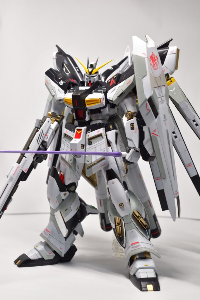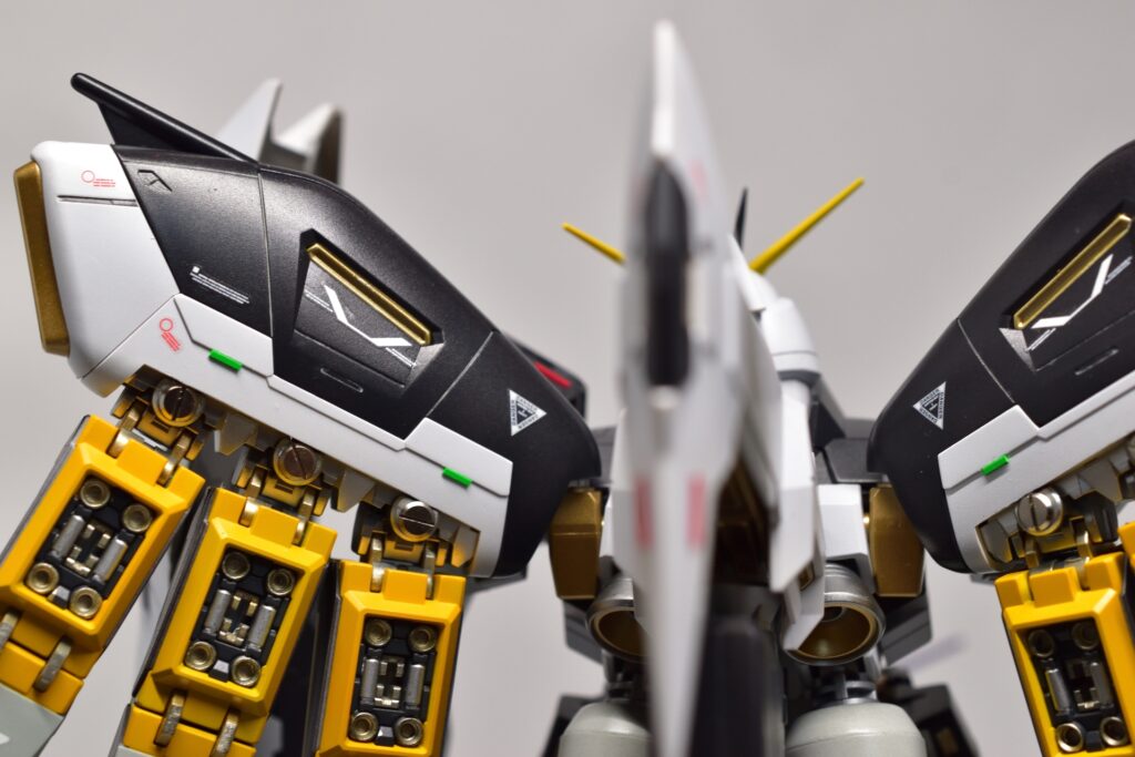Hi-ν Gundam Ver.Kaの改修は、ディテールアップを多く取り入れて非常に手間をかけましたが、その分非常に充実感のある仕上がりとなりました。細部にわたるカスタマイズが、元のキットに新たな魅力を与え、オリジナルのカラーと合わせて、非常に美しい完成品ができあがりました。次回はさらにディテールを詰めて、さらに魅力的なカスタマイズを目指したいです。