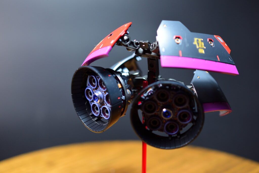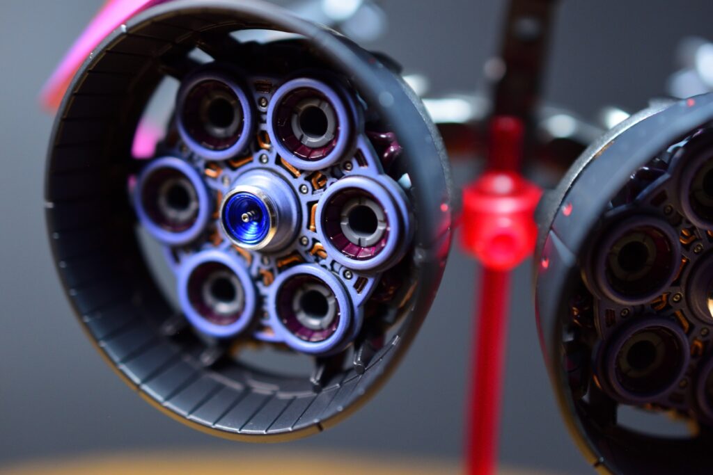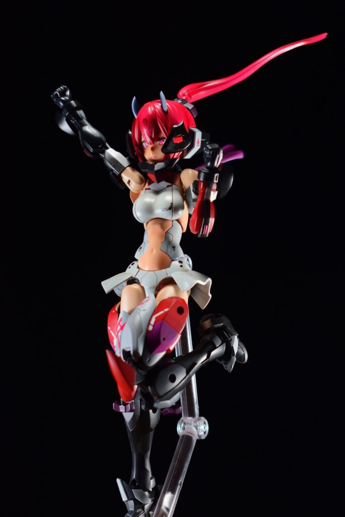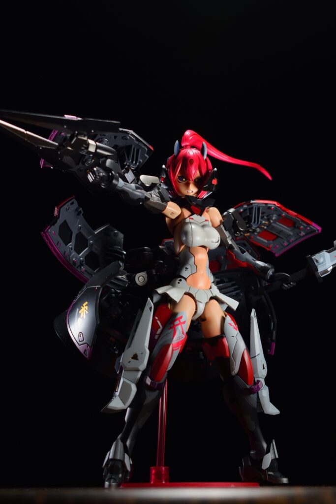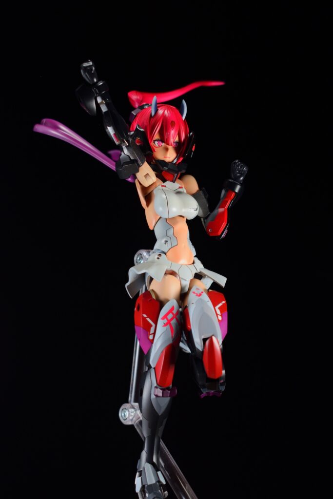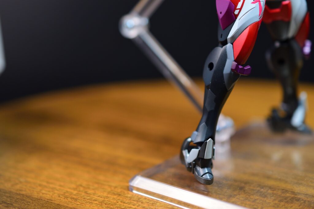 装甲はフレキシブルに動くため、防御形態、展開形態、飛行形態など自由にアレンジ可能です。また、ブースターも角度変更ができます。ブースターや装甲の細かいモールドは、マスキングでは塗り分けが難しかったため、シタデルカラーを用いて筆塗りしました。