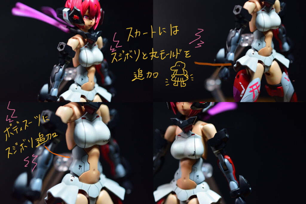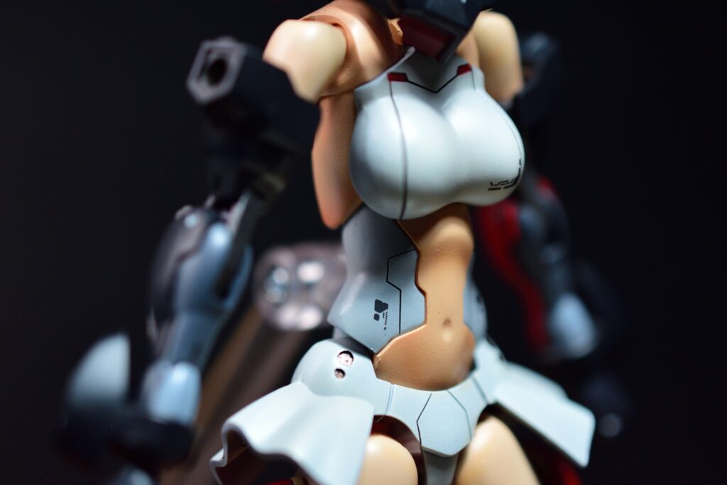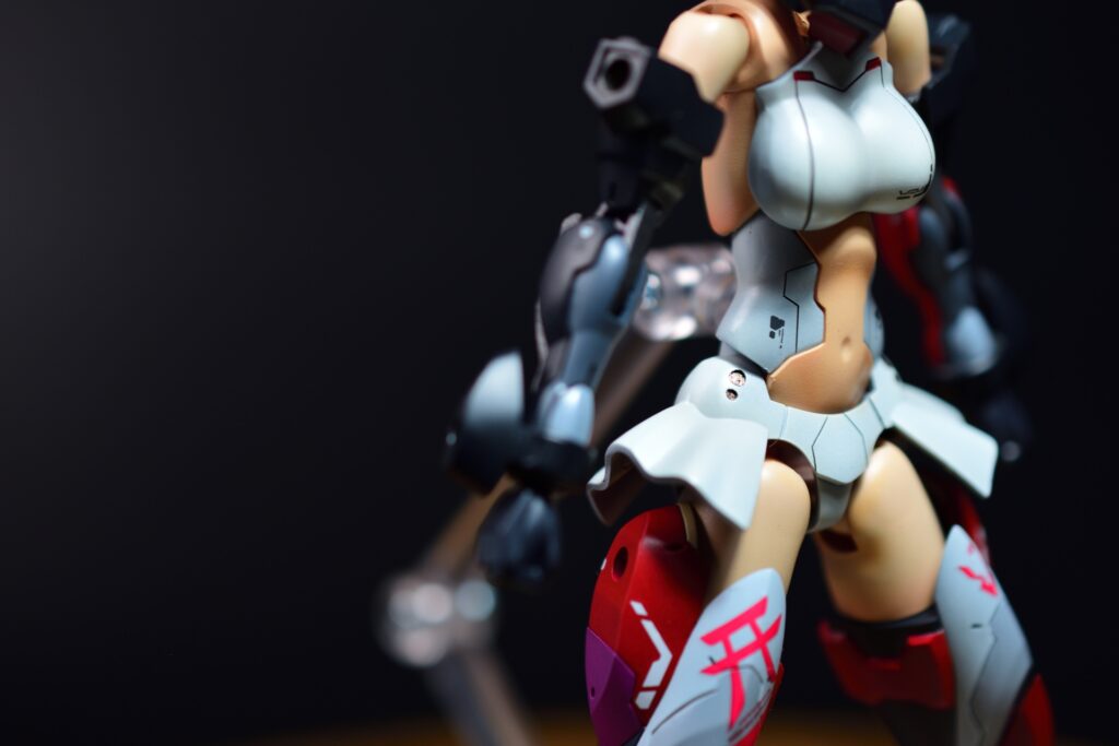 ほぼガンプラ製作しかしてこなかった私にとって、美プラ製作は初めての挑戦でした。そのため、多くの新しい技術を学ぶ機会となりました。ガンプラとは異なる製作工程、カラーリングの選定、肌塗装や質感表現、グラデーション(シャドウやハイライト)の技法など、多くの課題に直面しました。考えることが多く、思うように作業が進まず、モチベーションも低下し、製作が滞ってしまう時期もありました。