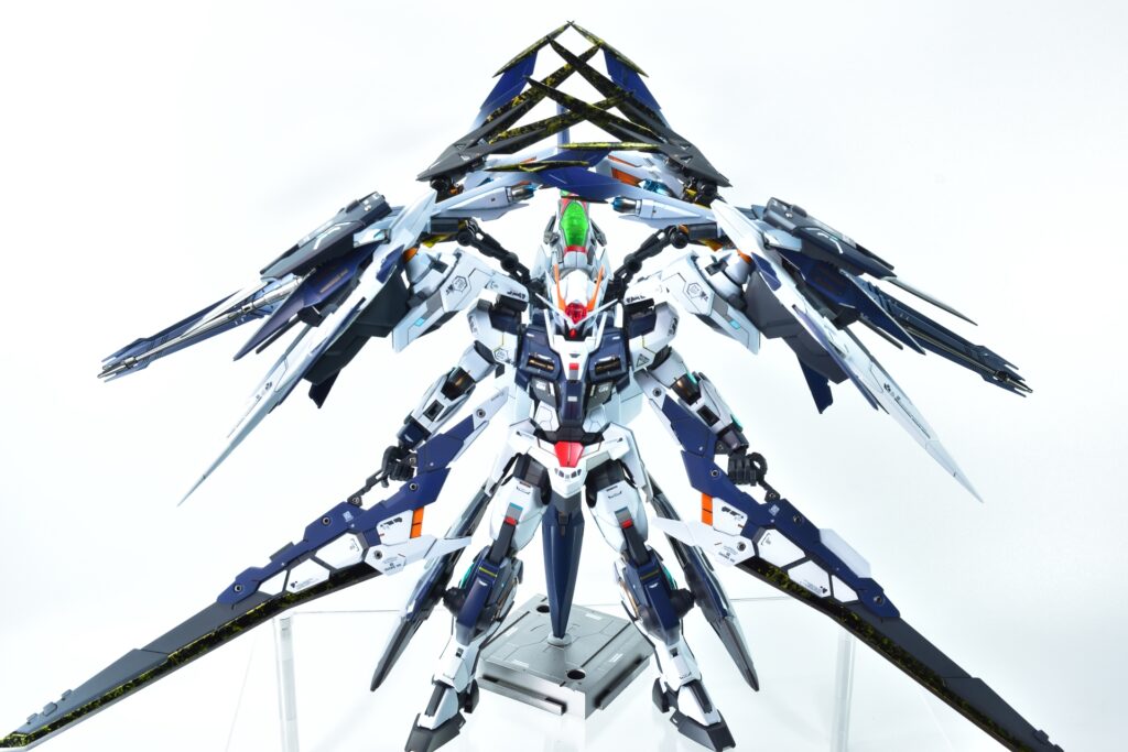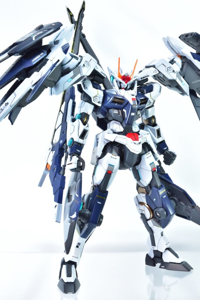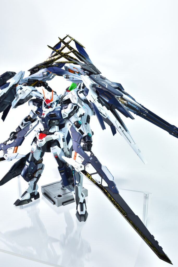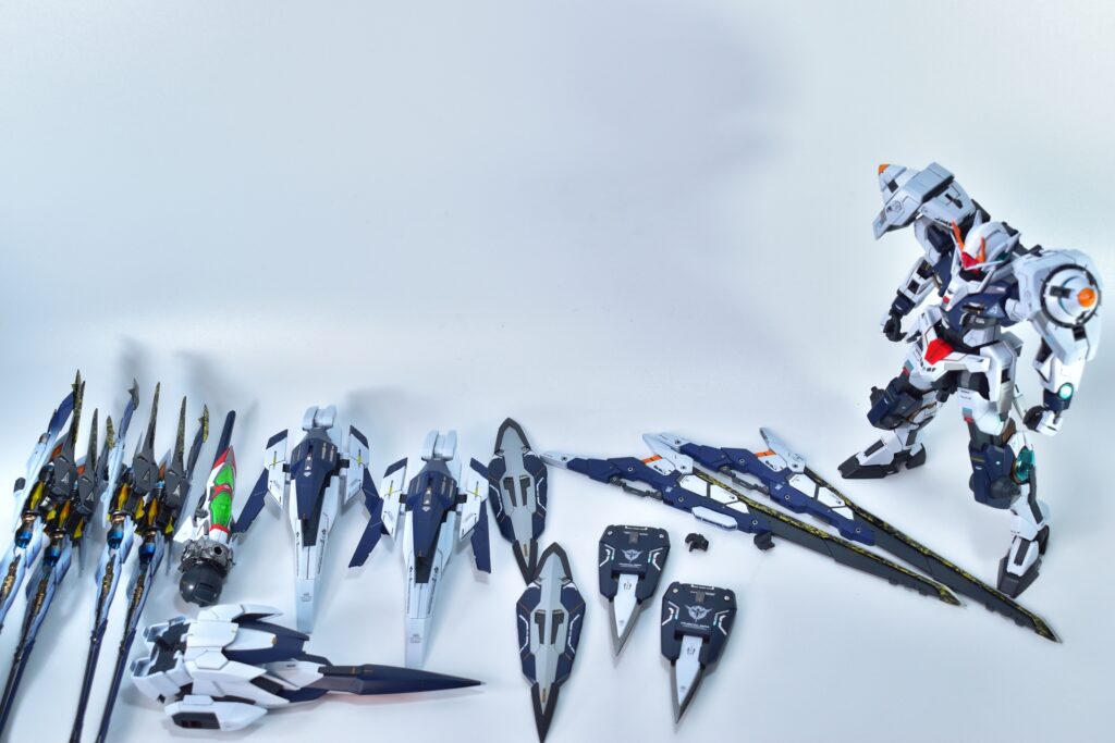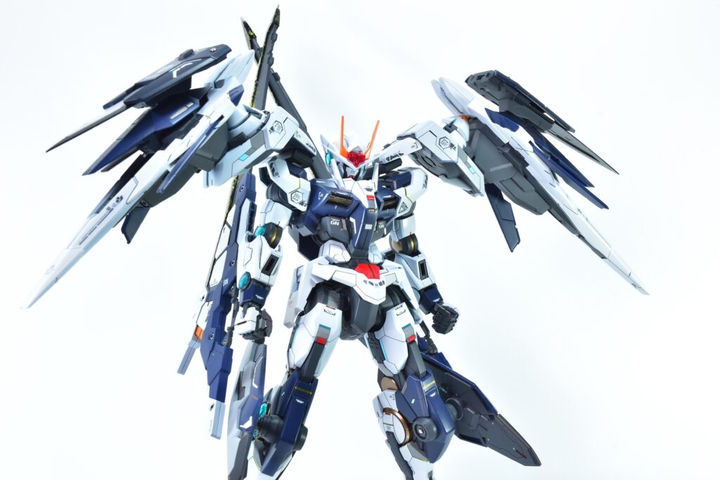 複数キットを組み合わせたミキシングビルドにより、独自性の高い00ライザーが完成しました。特にマニューバストライカーとのドッキングや形態変化、追加武装のジョイント改造により、プレイバリューが大幅に向上しています。
