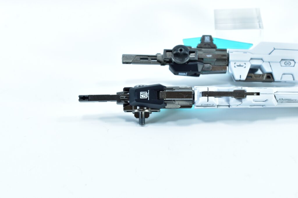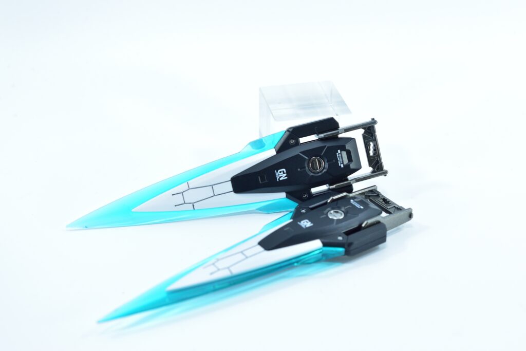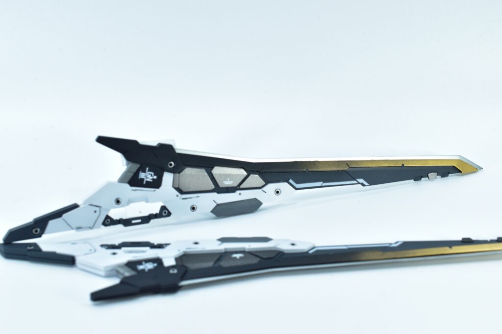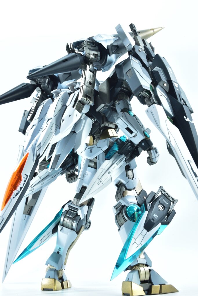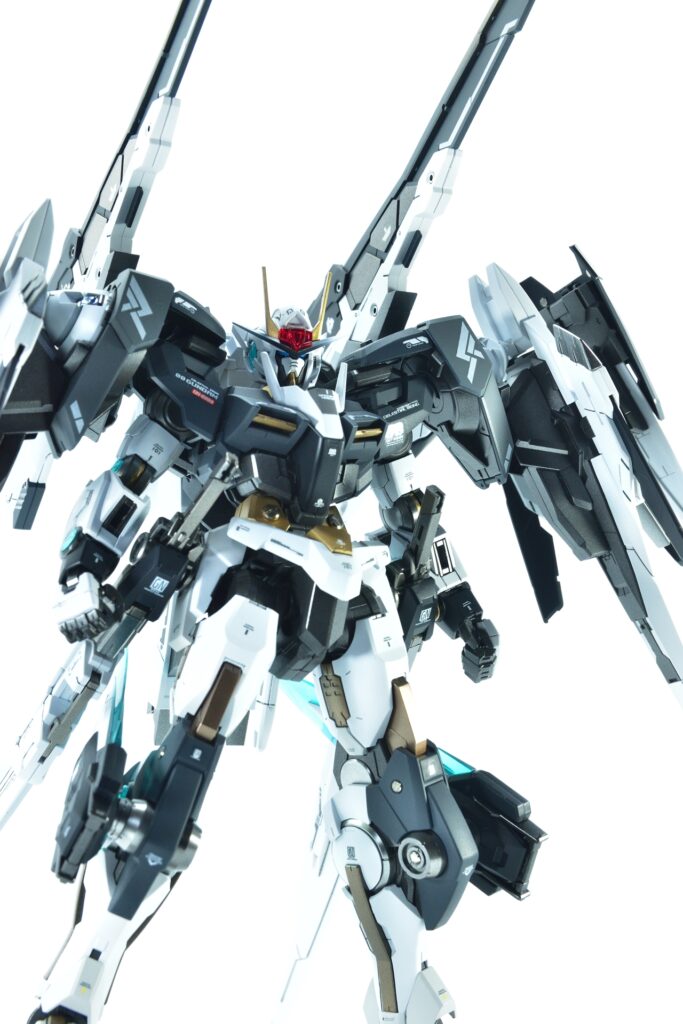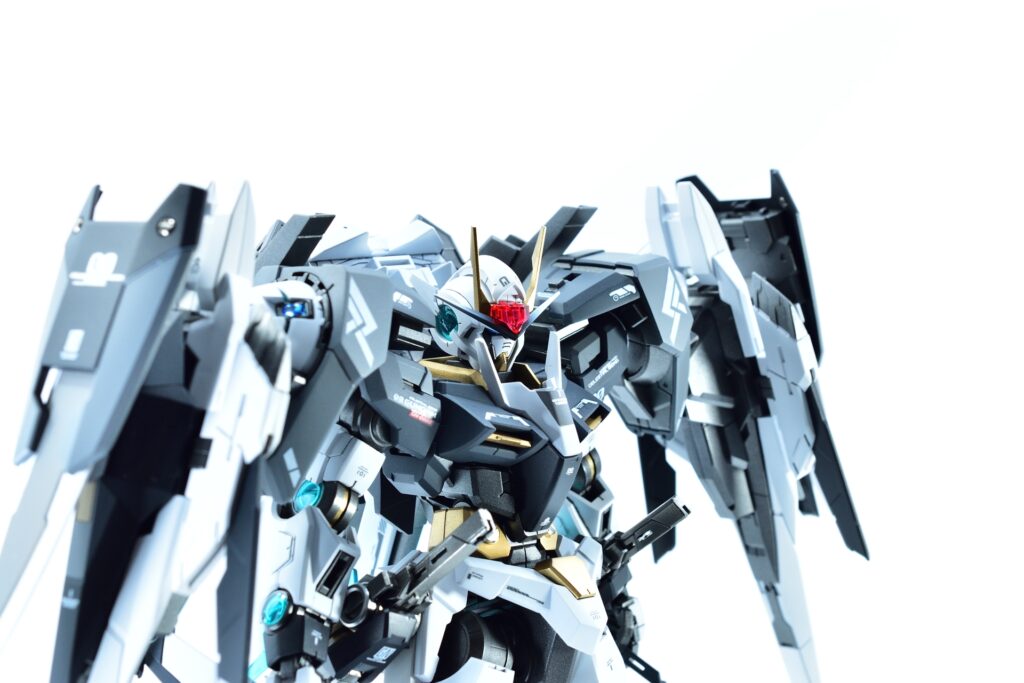 今回制作したのは、MGダブルオーザンライザーとMGダブルオーガンダムセブンソード/Gをベースにミキシングを施し、姉妹機として仕上げたオリジナルカスタム作品です。二機を同時進行で制作し、統一感のあるデザインとカラーパターンに仕上げました。