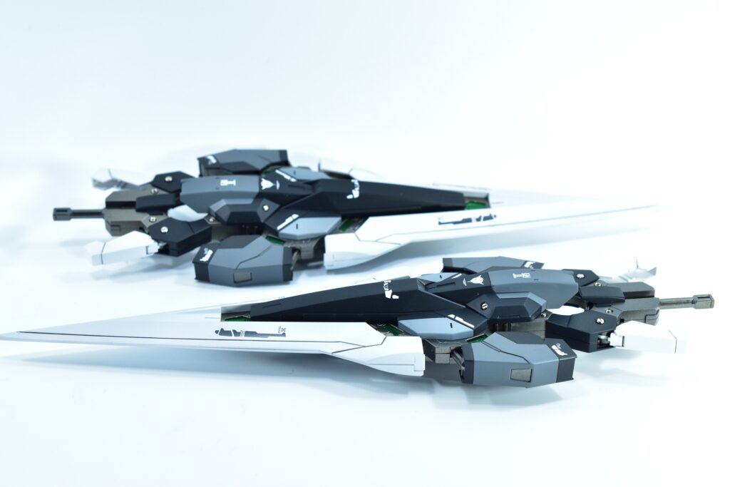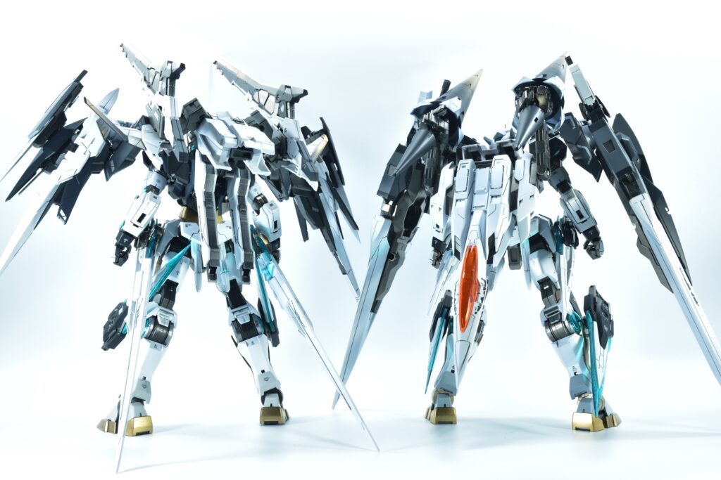 両機体が並ぶと、同じ世界観を共有しながらも個性の際立つデザインと装備の対比が楽しめる作品となりました。