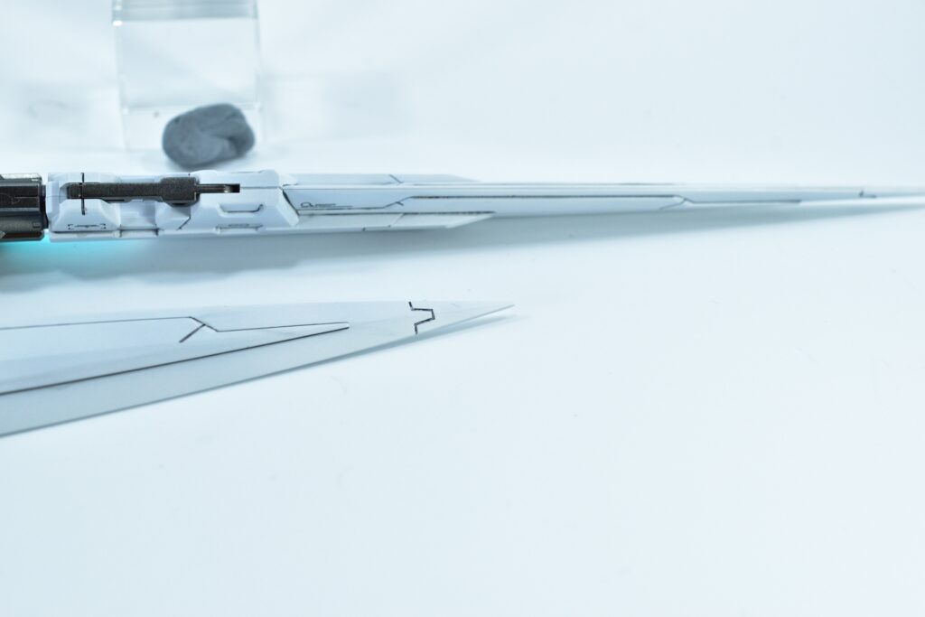 ザンライザーとセブンソードは、それぞれ異なる武装やデザインを持ちながらも、姉妹機としての統一感を意識して制作しました。モノクロのシンプルな配色ながら、差し色とディテールの追加によって深みを持たせています。