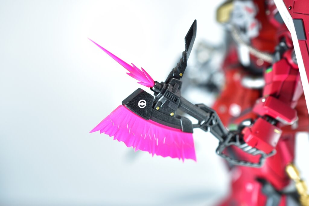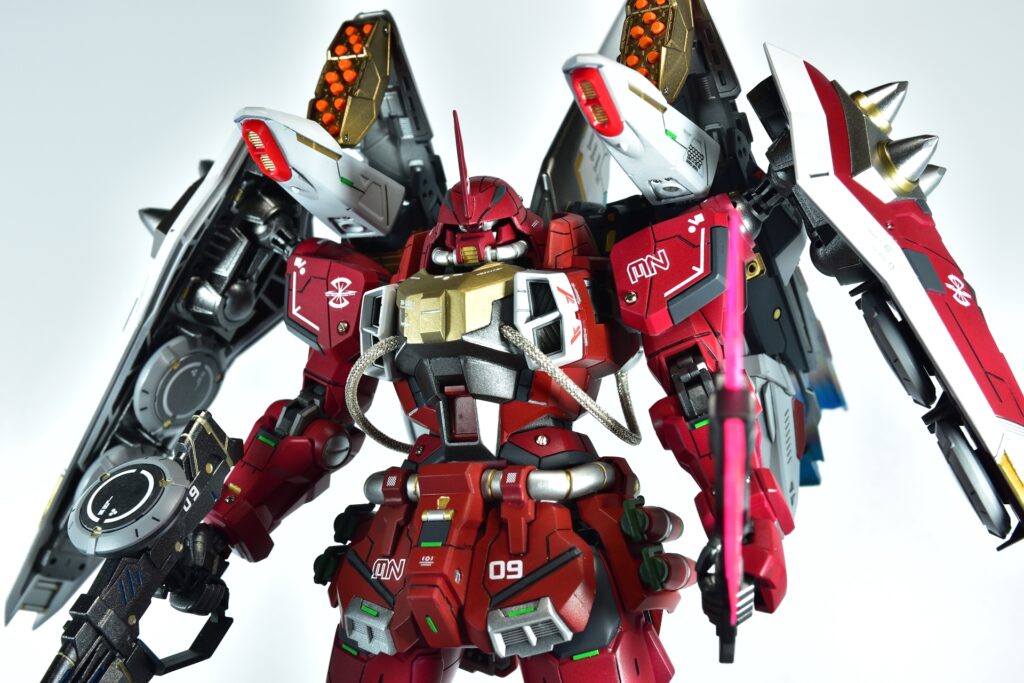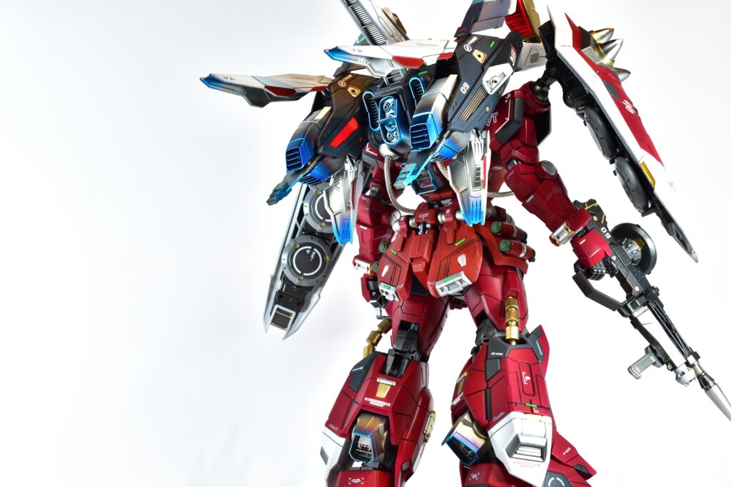 シンプルながらも緻密な改修と赤ベースの大胆なカラーチェンジによって、MGブレイズザクファントム/ウォーリアの新たな一面を引き出しました。手間を惜しまないディテールアップが全体の完成度を高めています。ぜひ詳細画像をご覧ください!