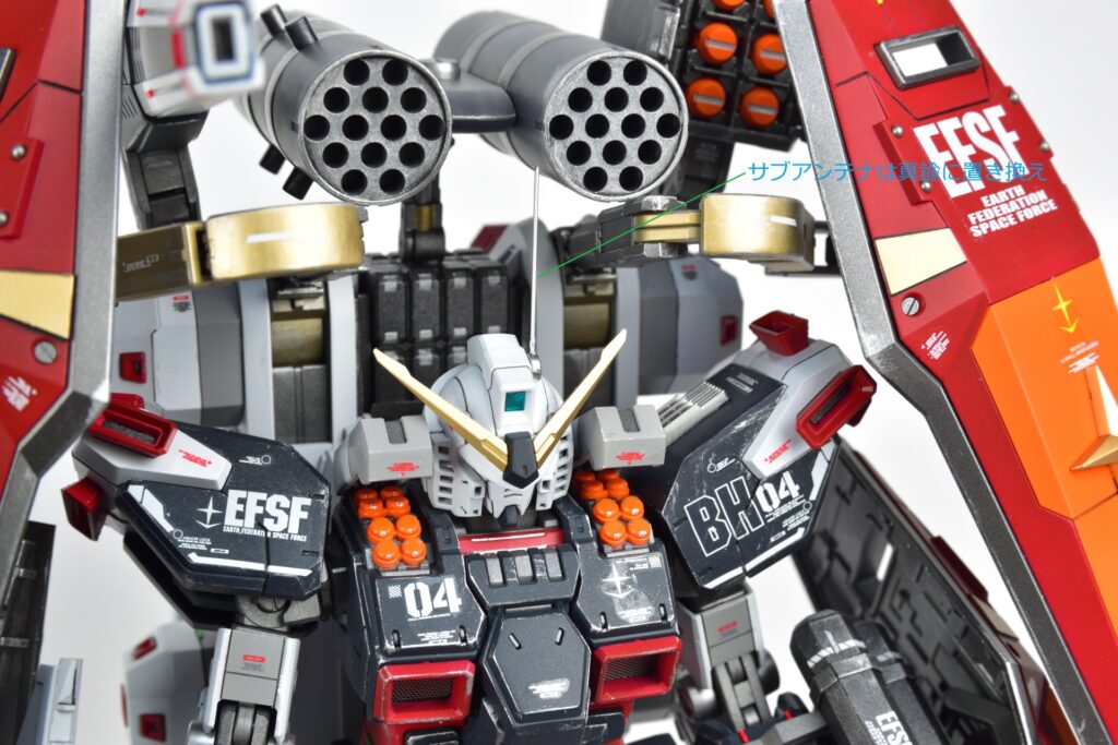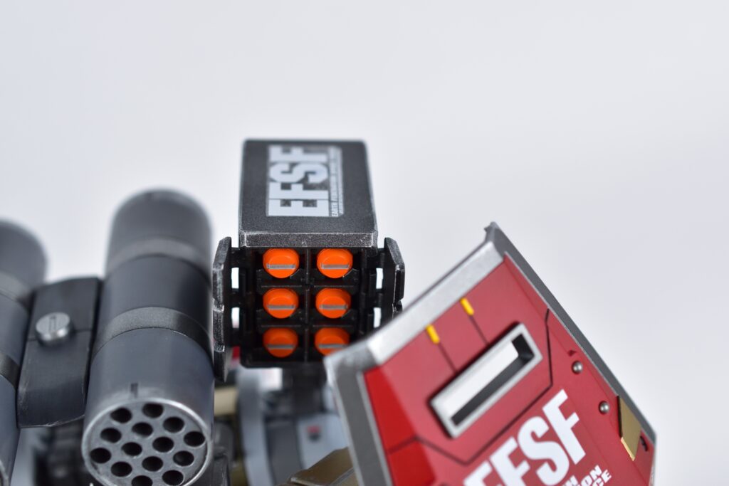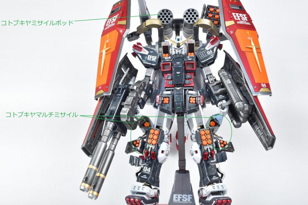 寿屋製のマルチミサイルとミサイルポッドを装備。キットの純正装備に頼らず、迫力を増すカスタマイズを施しました。