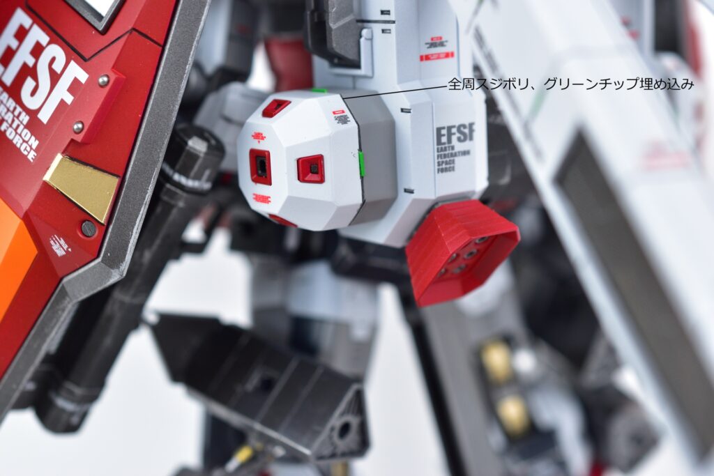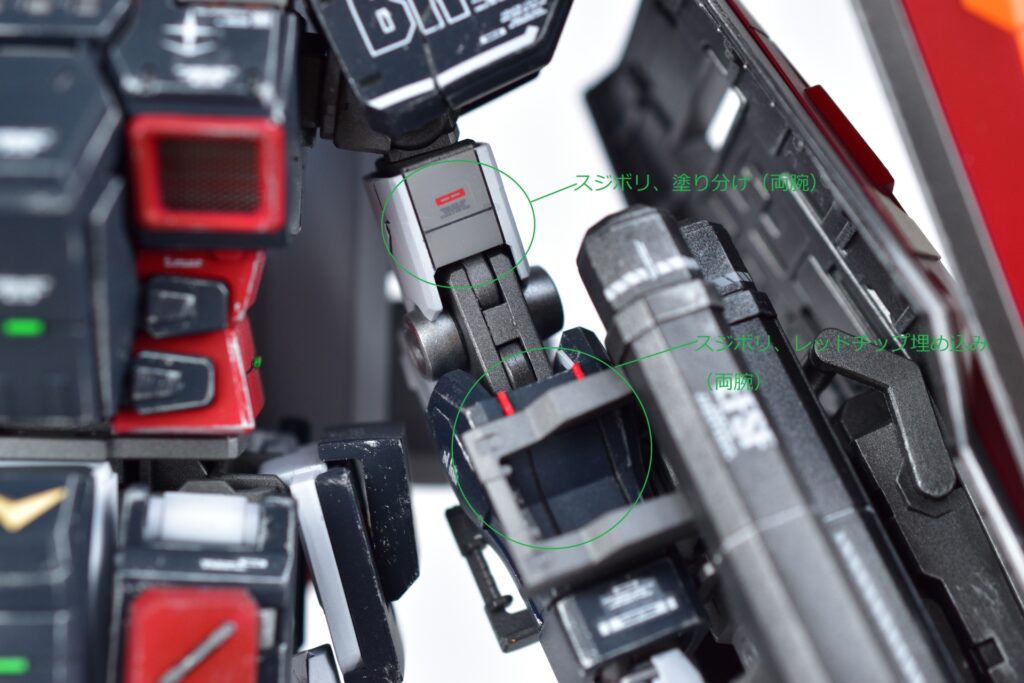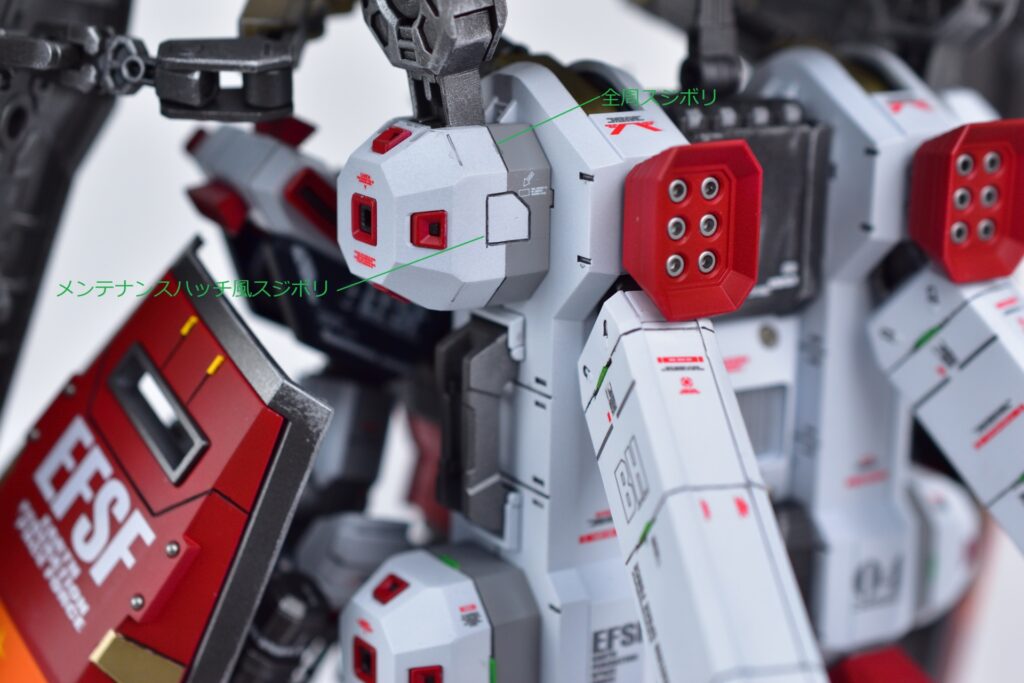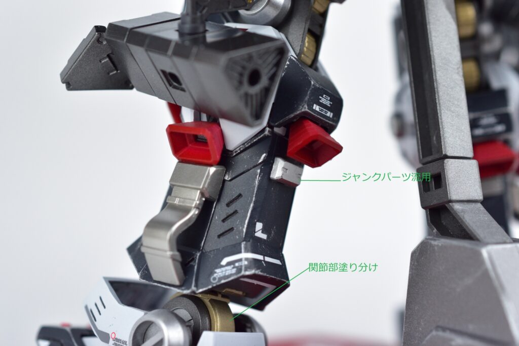 膝や肘の関節に付属するビニール素材は使用せず、代わりに塗り分けを行うことで質感を高めました。