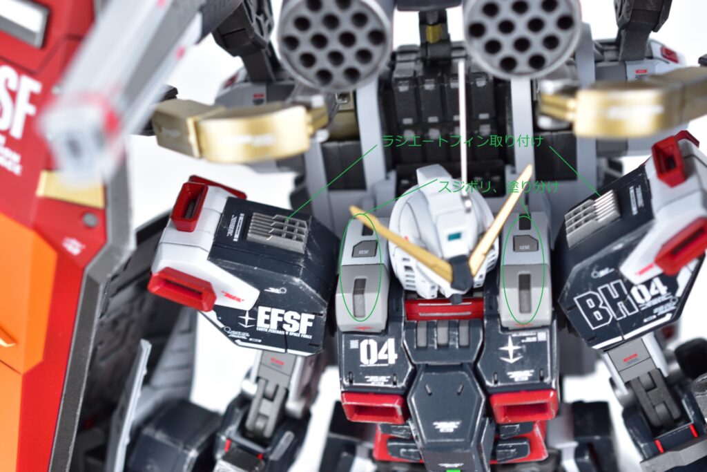 今回のテーマは「原作の再現をベースに、個性をプラス」。カラーリングはほぼ原作に沿いつつ、アレンジを加えることで新たな魅力を引き出しています。特にシールドやバックパックの改修に注力し、オリジナリティあふれる作品に仕上げました。