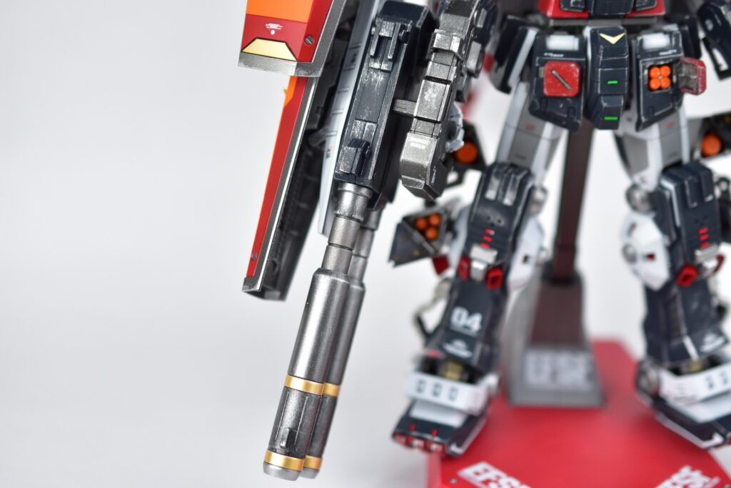 塗装では、武装やアーマー部分にドライブラシを施し、金属の擦れや使用感を再現。最終仕上げに艶消しクリアを吹き付け、質感を整えました。