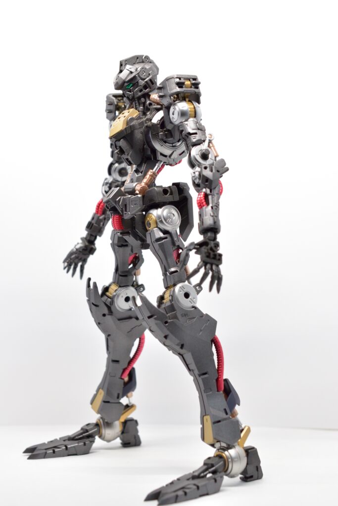 各関節部については、ゴールドとシルバーで塗り分けを行い、強調しています。これにより、全体の印象が引き締まり、ディテールが際立ちました。