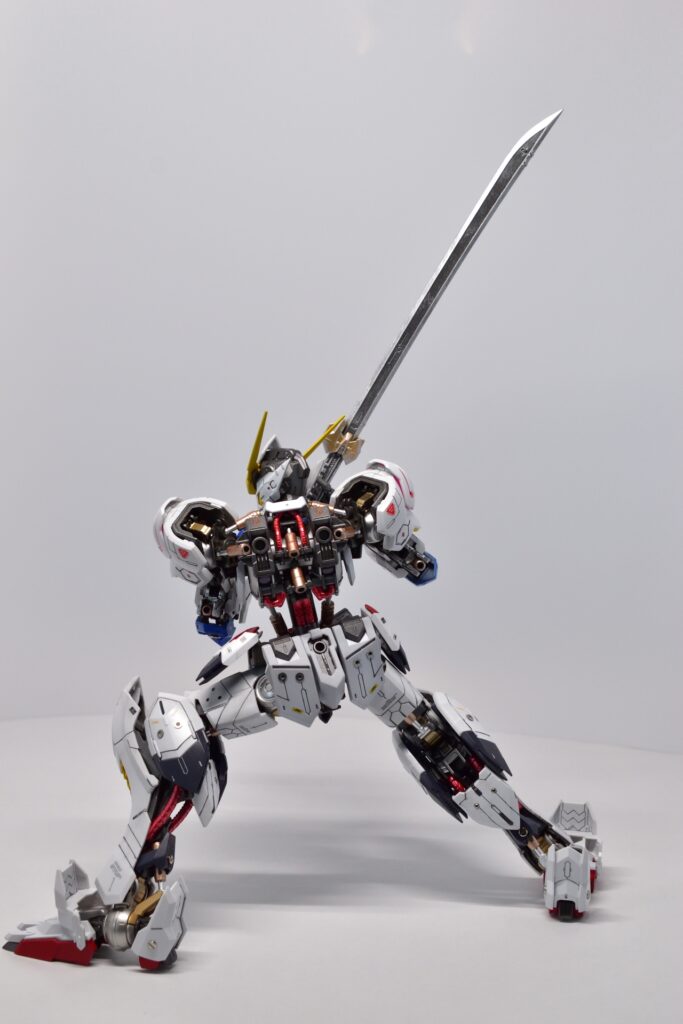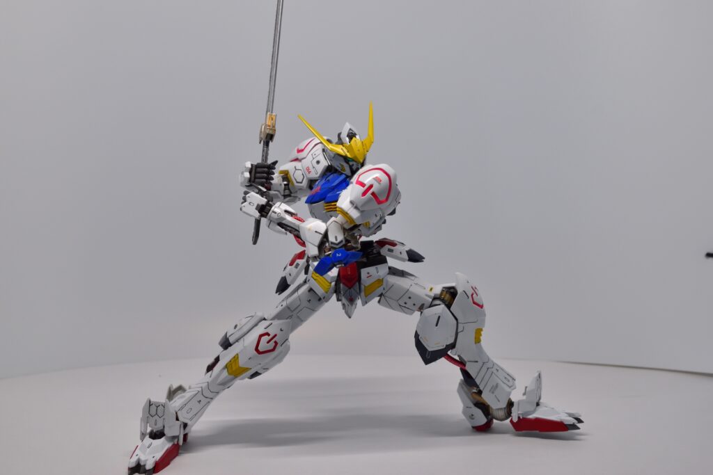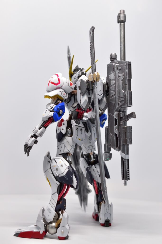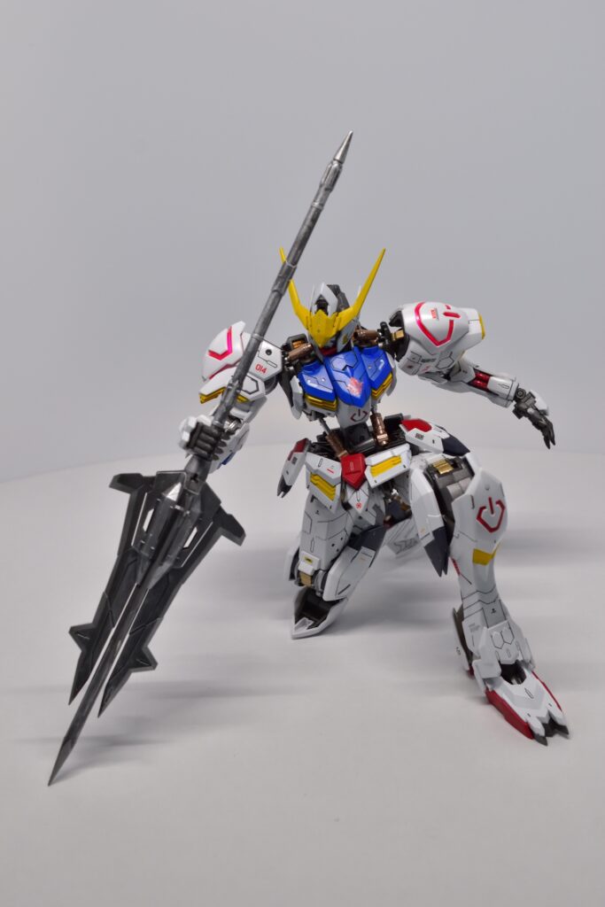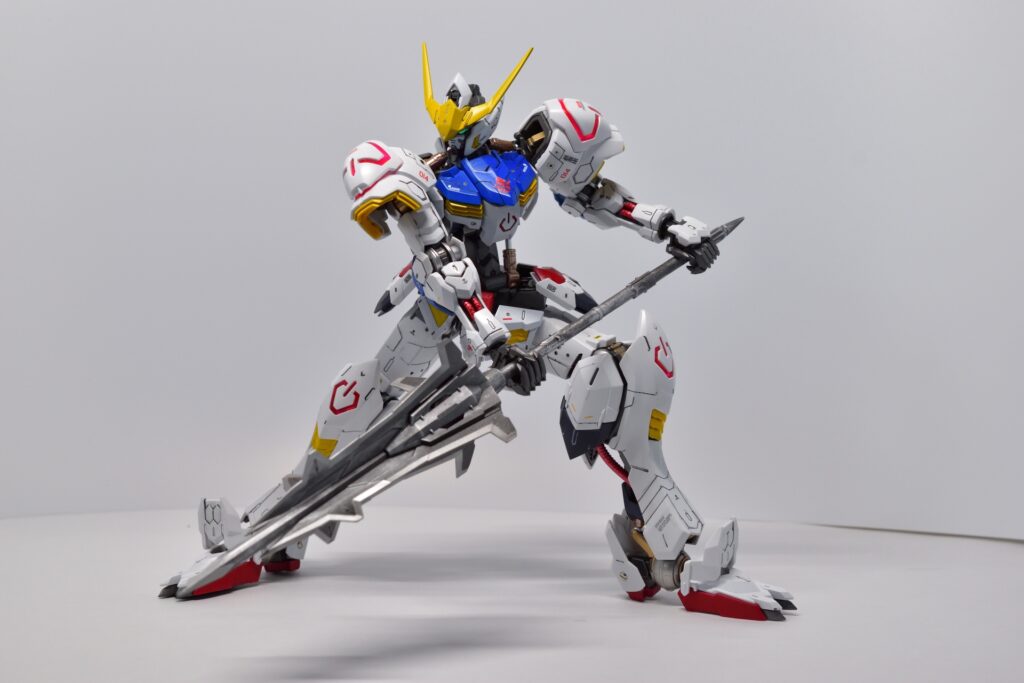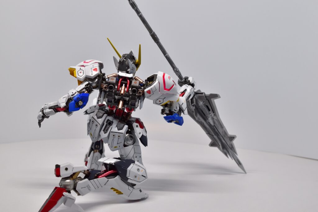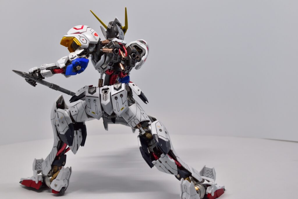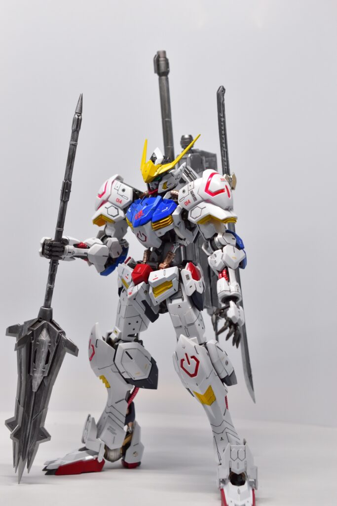 MG ガンダム バルバトスの改修は、全塗装とディテールアップを施したことで、オリジナルの魅力が引き立つ仕上がりになりました。細部にわたるカスタマイズが、キットの完成度を高め、非常に満足のいく完成品になりました。次回作にもさらに手を入れた改修を目指して、次のステップへ進んでいきたいです。