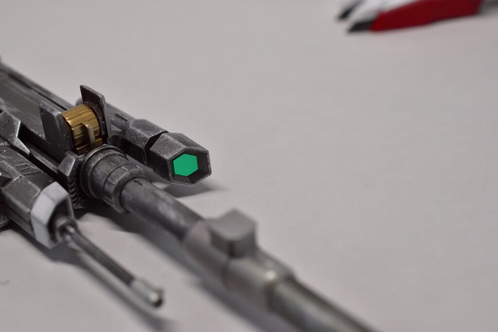 動力パイプにはレッドメタリックで塗り分けを行い、エイハブリアクターはクリアパープルで色付けしました。シリンダーシャフトはキット標準のメッキをそのまま残し、シリンダー部分はメタリックカッパーで塗装しています。これにより、部品の質感が向上し、よりリアルに仕上がりました。