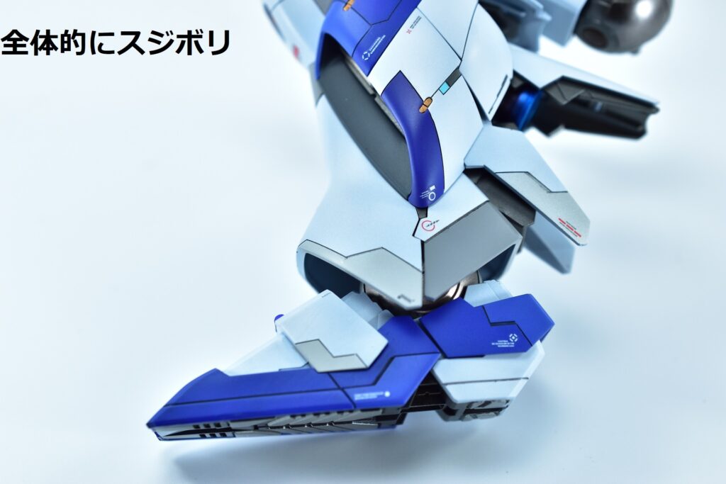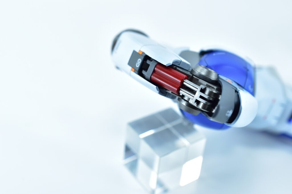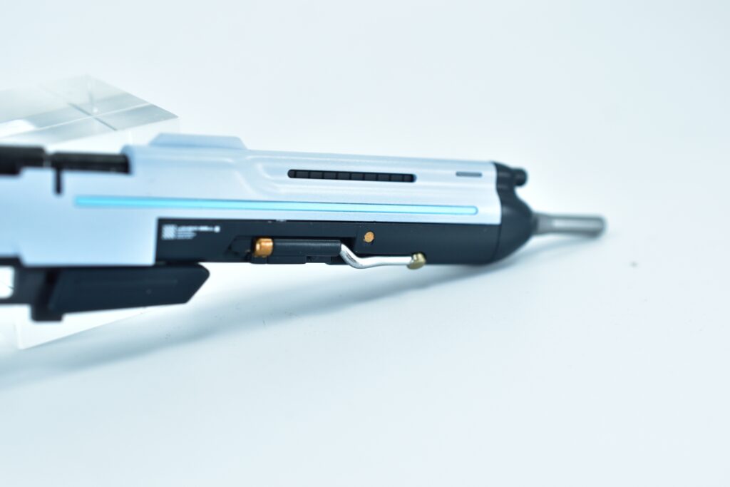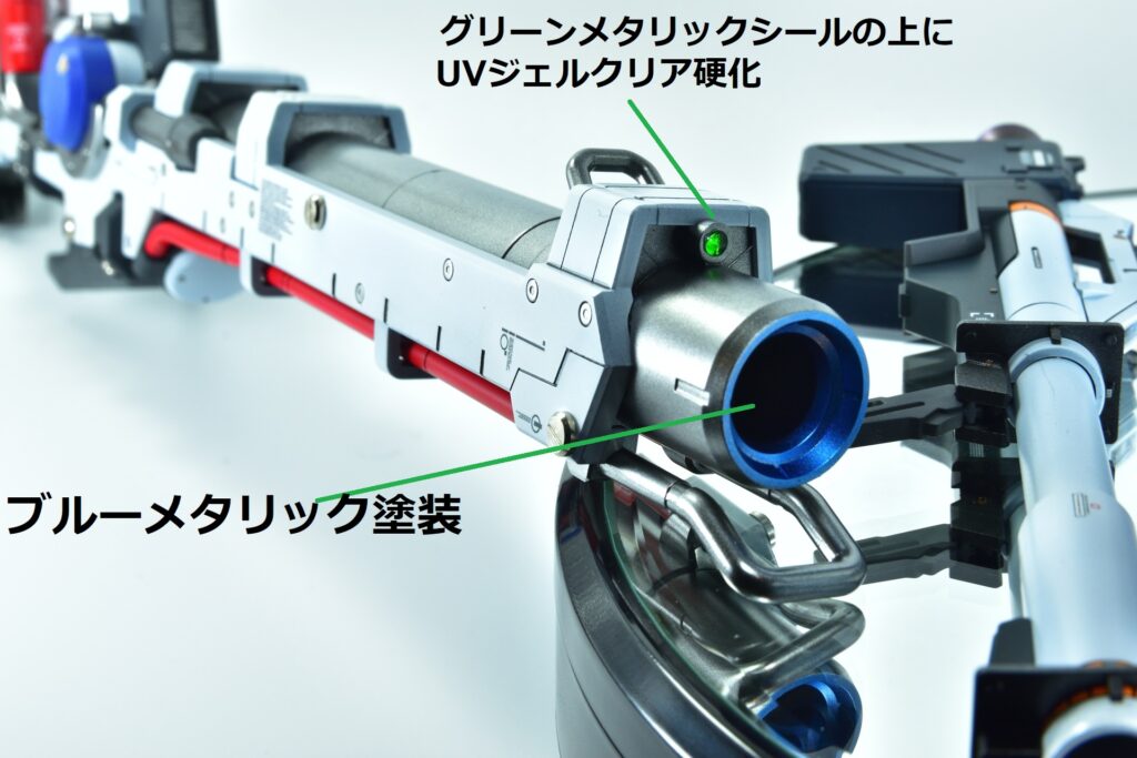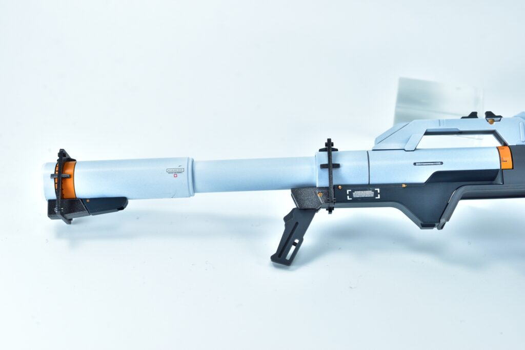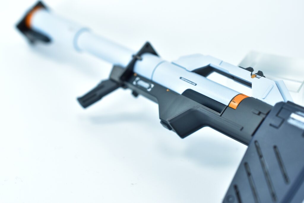 元々RG用のハイパーメガバズーカをMGに装備させるという大胆な改造を施しました。RGのバズーカはサイズが大きすぎて不釣り合いだと思いきや、MGとのバランスは抜群にマッチ。結果的に、この改造が大成功となり、武装としての存在感を強調することができました。