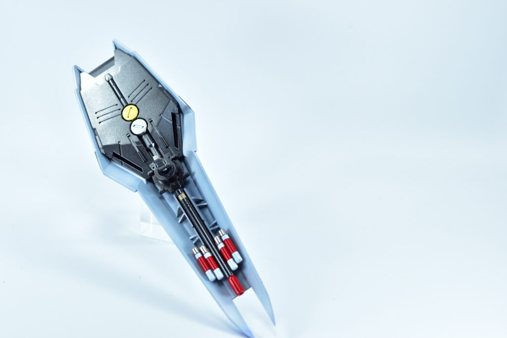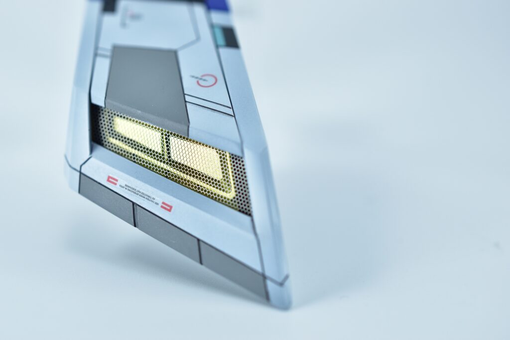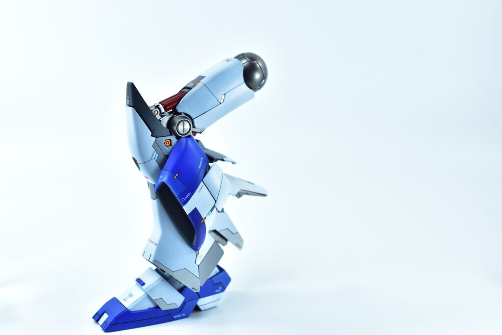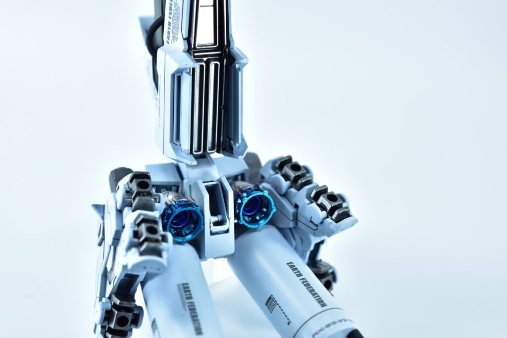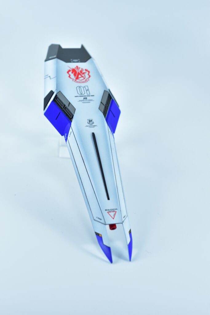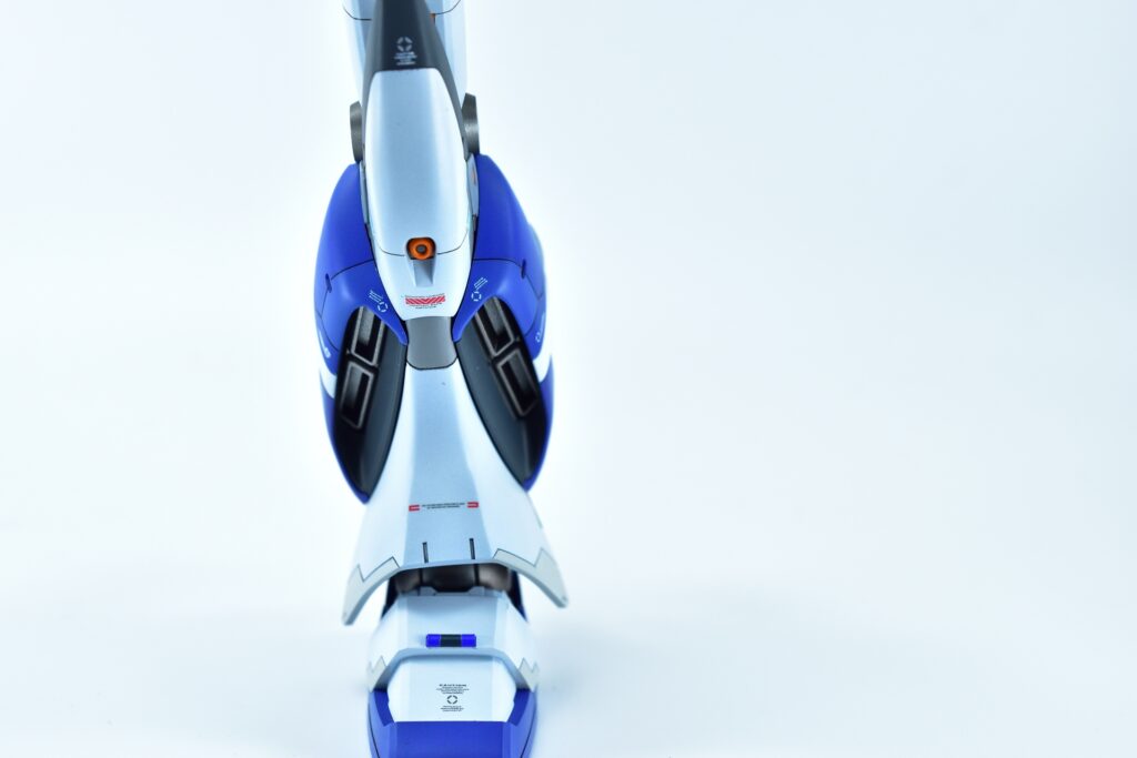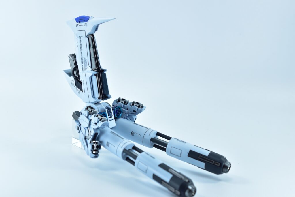 バックパックのデザインにも手を加え、よりスムーズでかっこよく見えるよう改修しました。元々のデザインの良さを活かしつつ、全体のバランスを調整し、戦闘機のような印象を与えられるよう工夫を凝らしました。