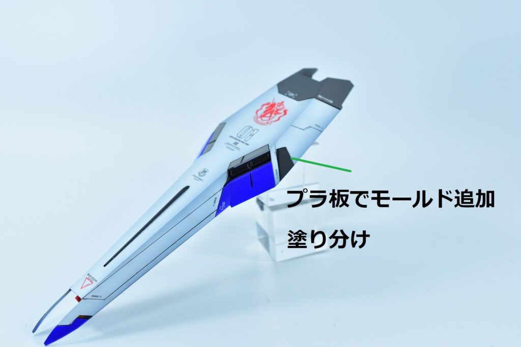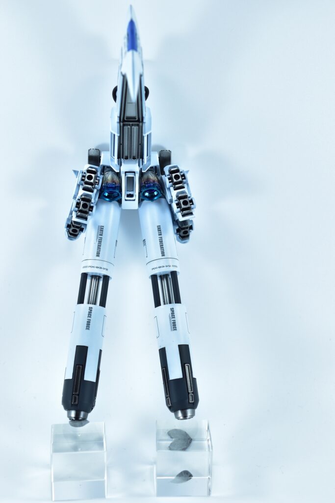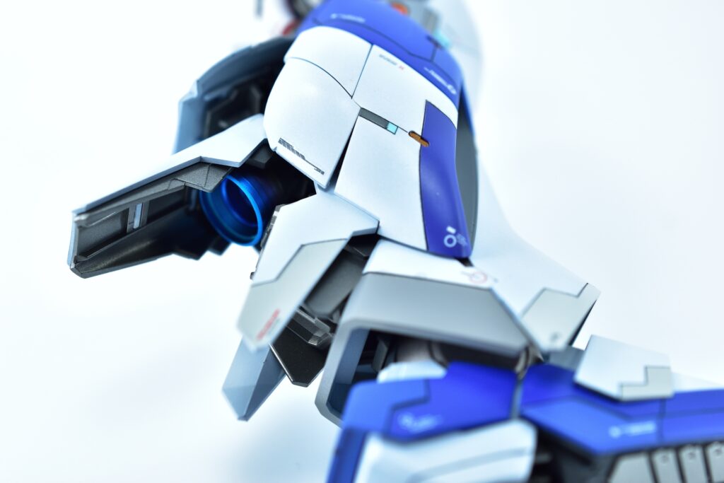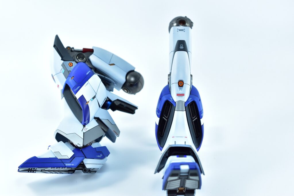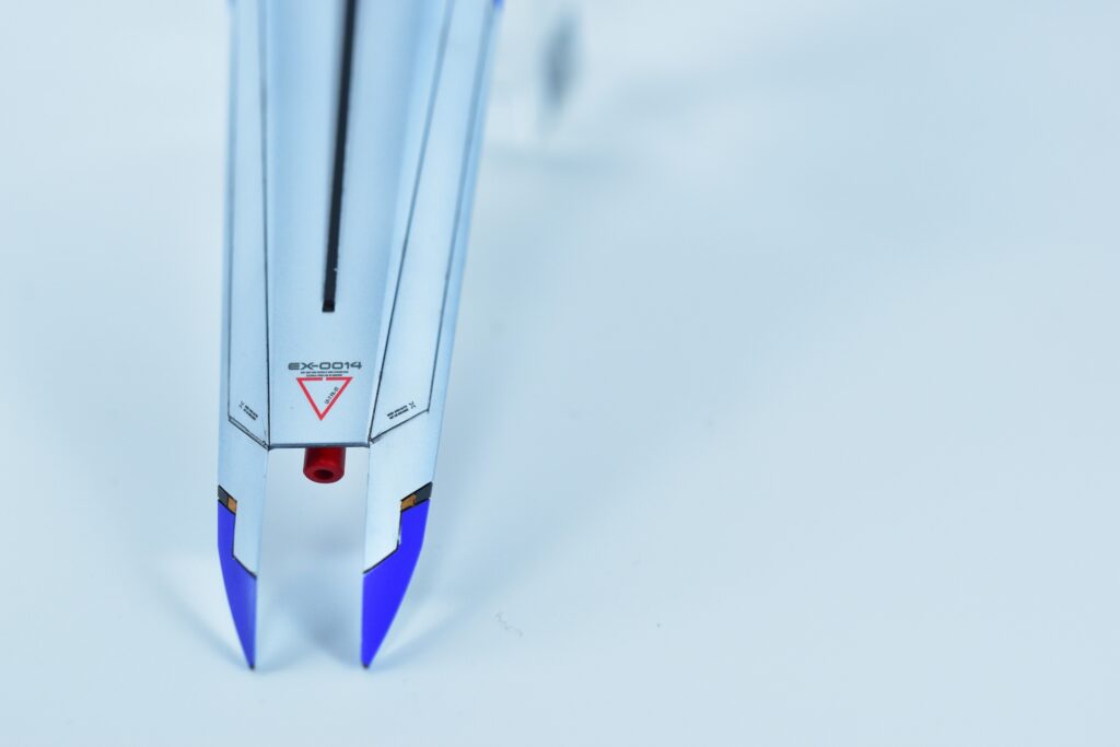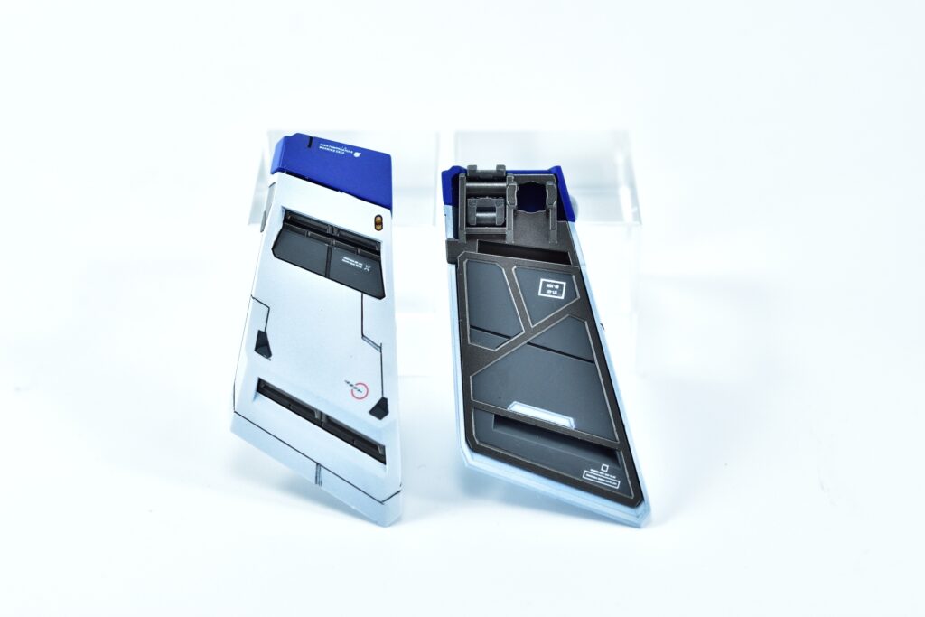 バックパックのデザインにも手を加え、よりスムーズでかっこよく見えるよう改修しました。元々のデザインの良さを活かしつつ、全体のバランスを調整し、戦闘機のような印象を与えられるよう工夫を凝らしました。