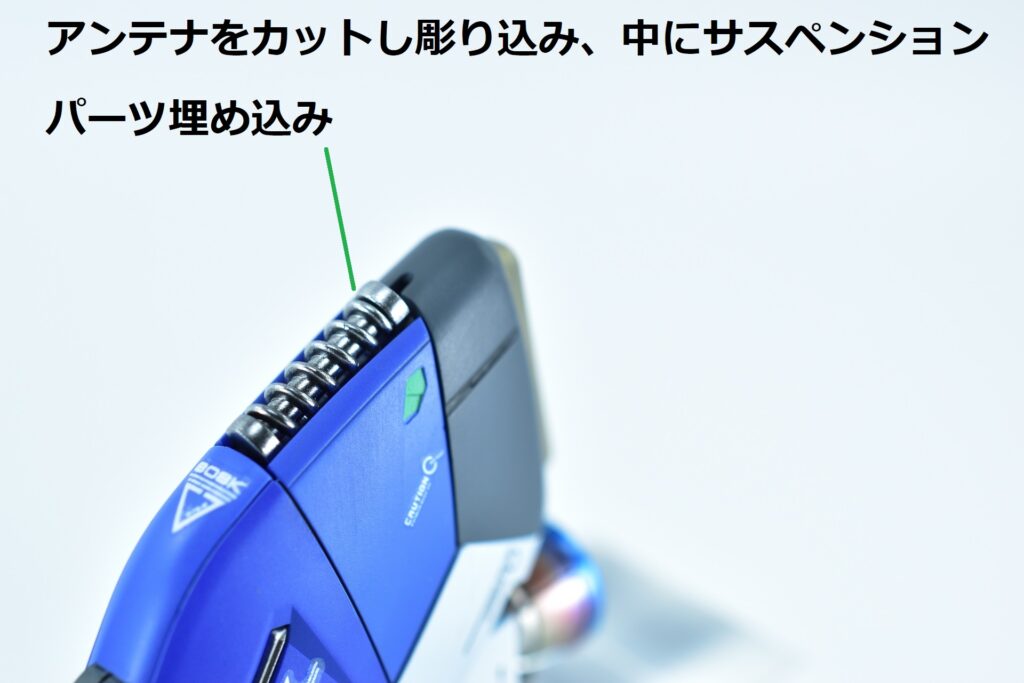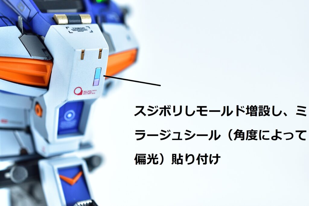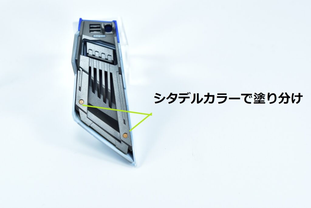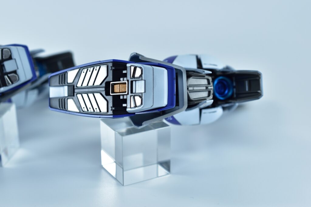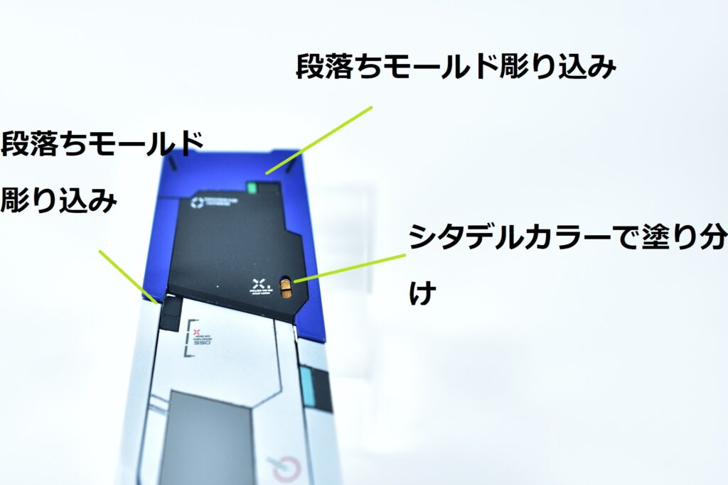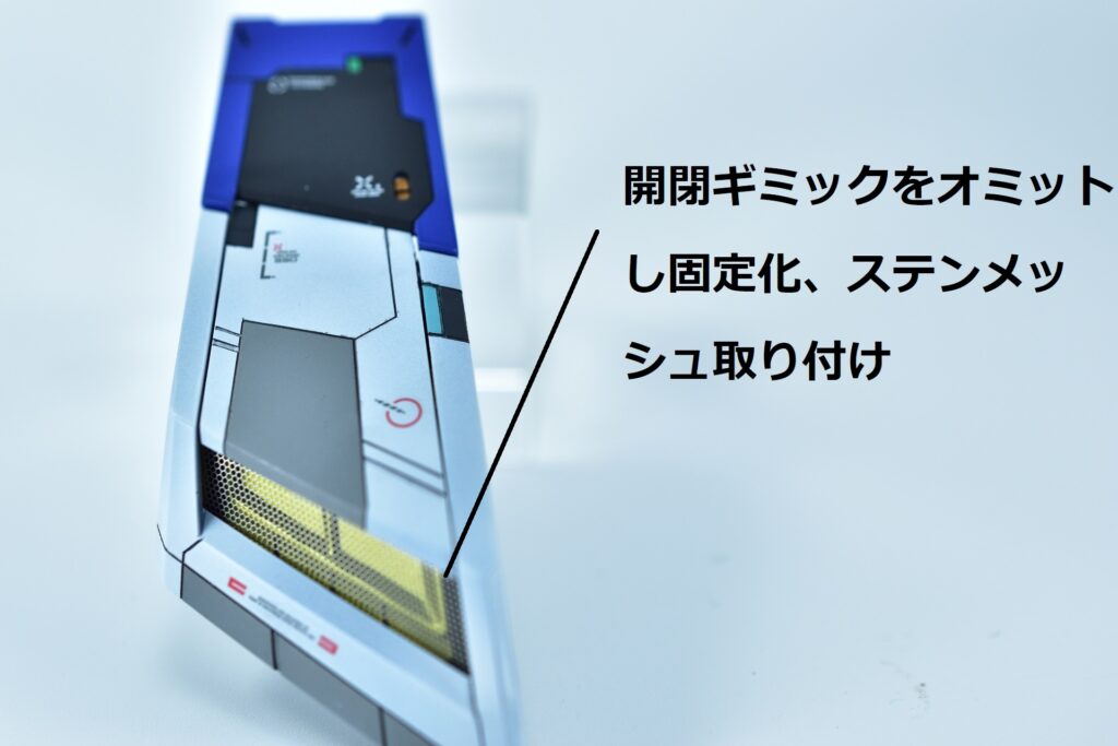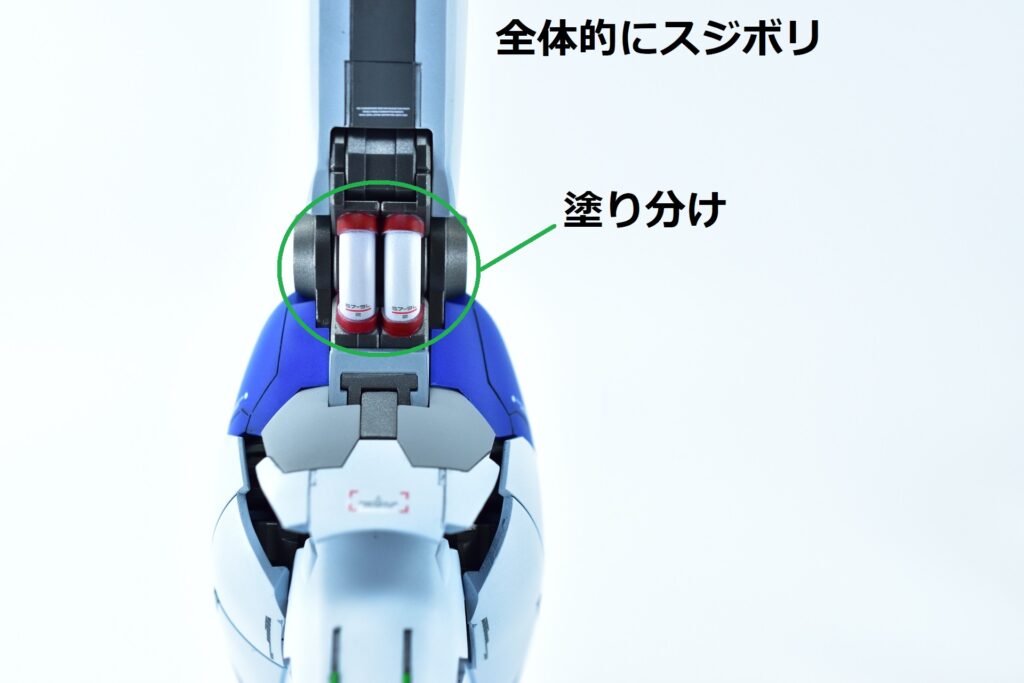 バックパックのデザインにも手を加え、よりスムーズでかっこよく見えるよう改修しました。元々のデザインの良さを活かしつつ、全体のバランスを調整し、戦闘機のような印象を与えられるよう工夫を凝らしました。
