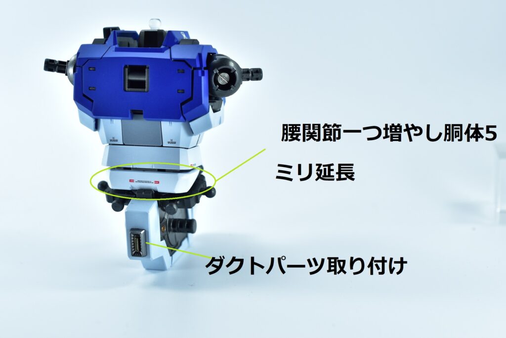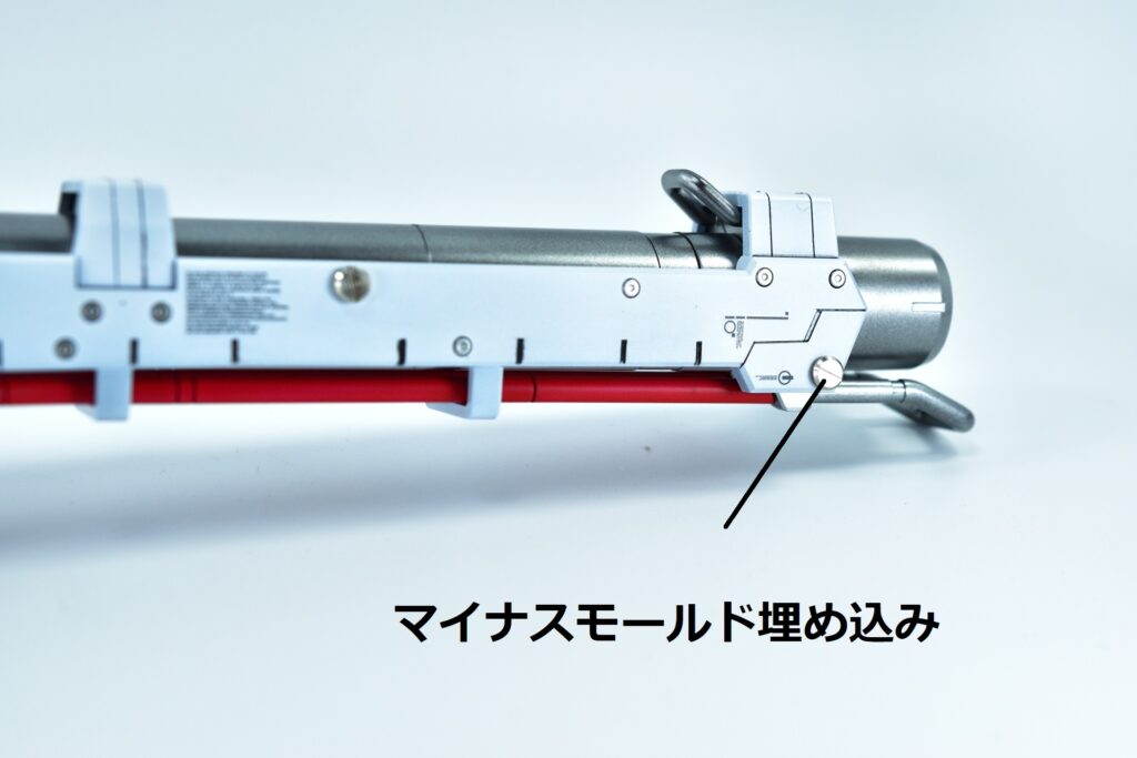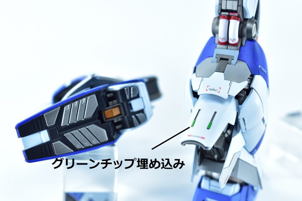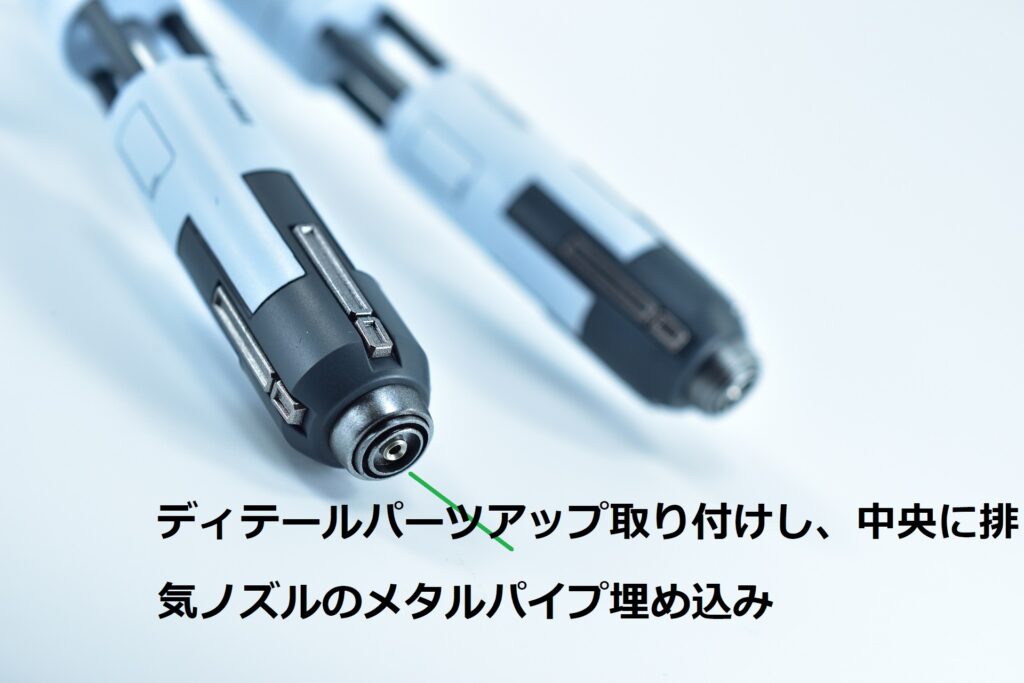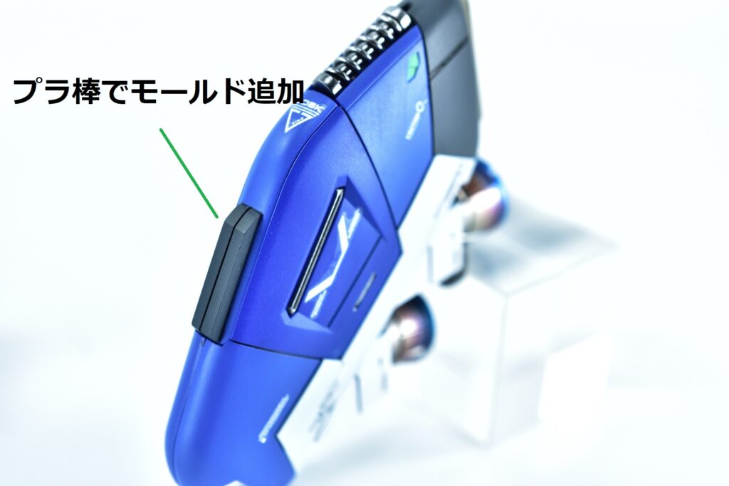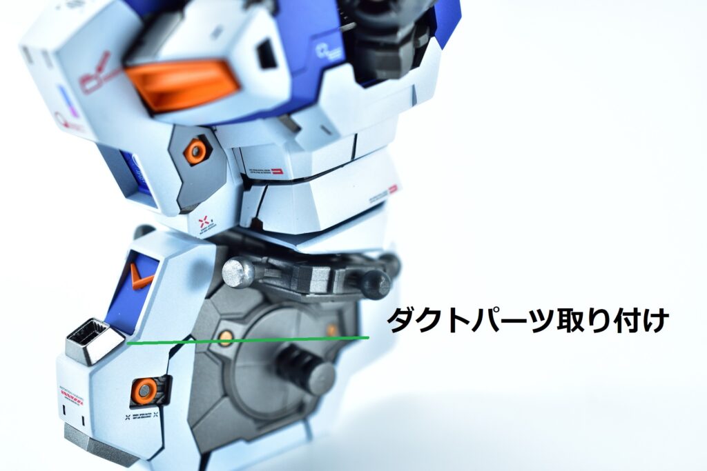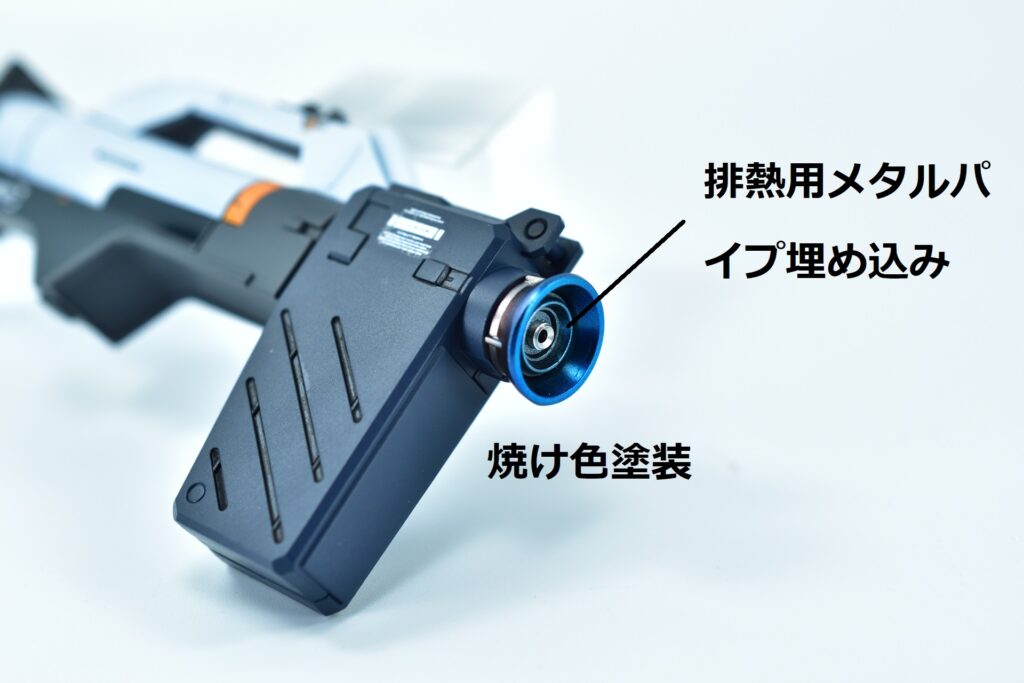 従来のプロペラントタンクは長すぎて、個人的に好きではなかったため、切り詰めて改修しました。さらに、プラ棒を使ってパイピング風のディテールを加え、より実戦的な印象を与えています。