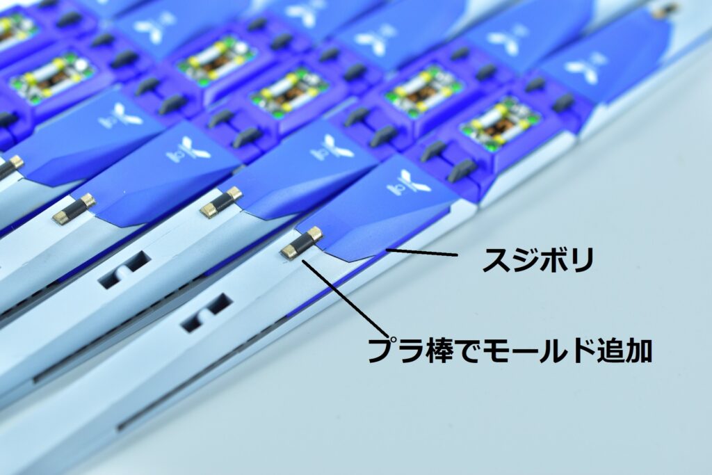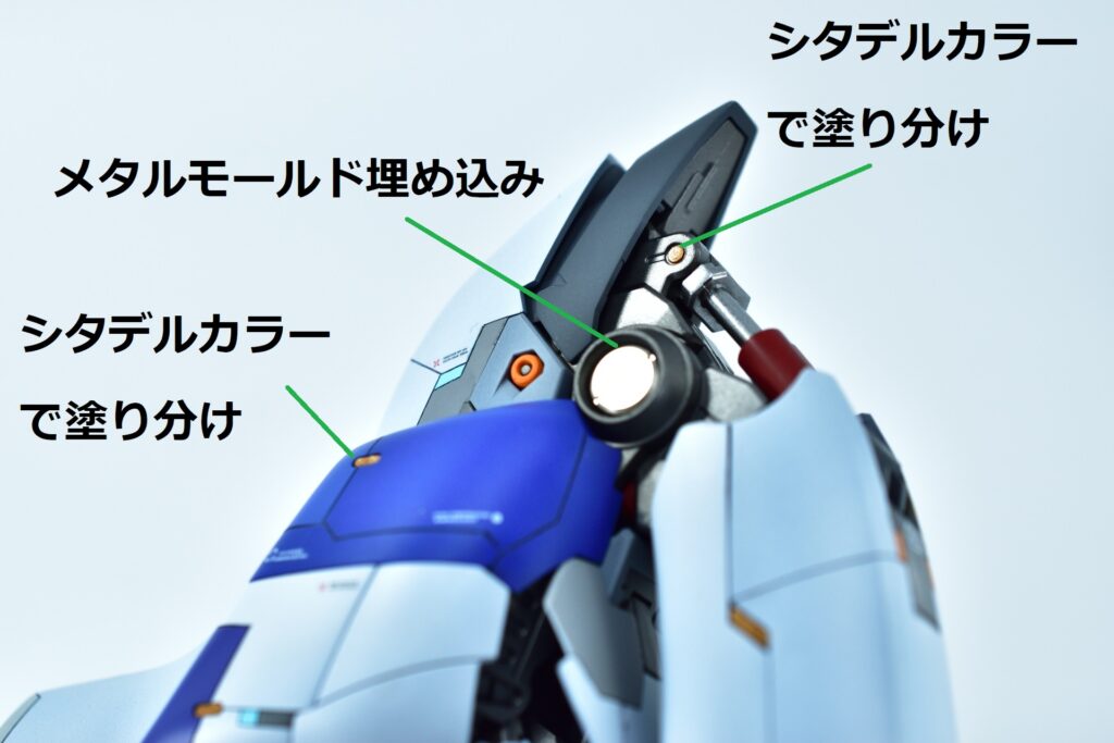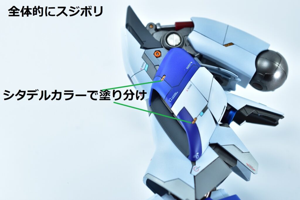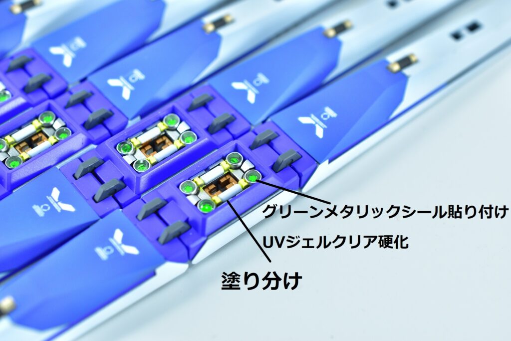 • 青いパーツは調色し、3色で塗り分けて情報量を増やしました。これにより、色の深みが増し、全体のバランスが整いました