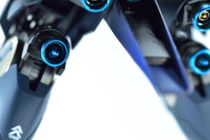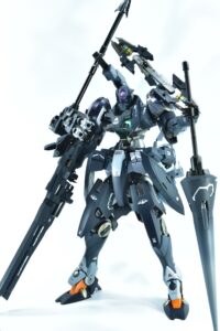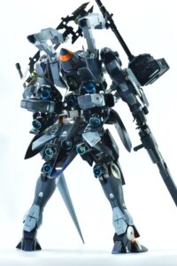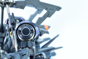 また、カラーリングでは「少ない色数でどれだけ魅せられるか」に挑みました。ダークなトーンながらも、クリアとつや消しの使い分けやメタリックカラーのアクセントにより、重厚感のある機体が完成しました。