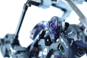 カラーリングには、話題の「ヘキサカラー」シリーズを中心に、少ない色数で魅力を引き出すことに挑戦。黒やグレーを主体とし、メタリックカラーやつや消し仕上げを活かして立体感を強調しました。また、GNドライブにはLEDを組み込み、背面バーニアや武装といった各パーツにも手を加え、全体的に高機動型らしい仕上がりを目指しました。