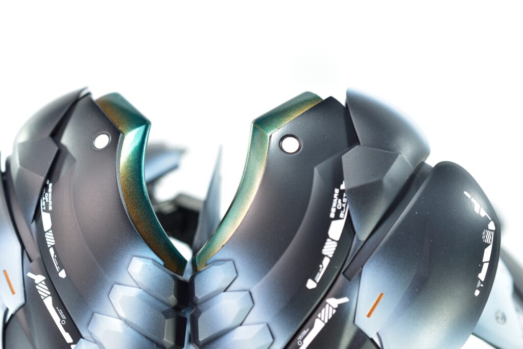本体を彩るウィングを中心に、全身に渡ってグラデーション塗装を施し、華麗で立体的な表現を実現。細部にはメタルパーツを組み込み、装飾性を高めました。