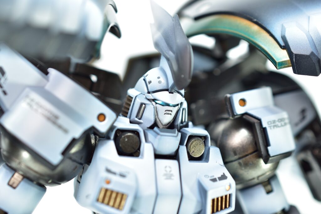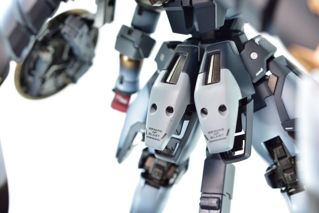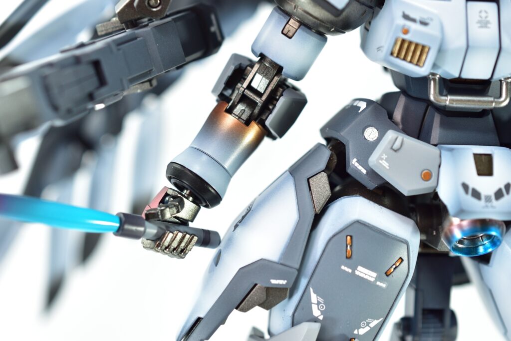 メタルパーツの配置やスジ彫りの追加により、各部に重厚感を与えました。また、ディテールアップパーツを活用して、通常のトールギスFでは味わえない情報量の多さを表現。