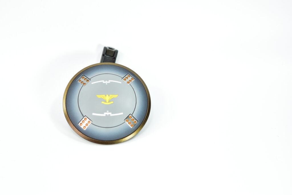 細かな装飾やモールドにはシタデルカラーを使用し、筆塗りで立体感を追加。特にスカート内部やブースターノズル周辺は、陰影を意識した仕上がりにしました。 - 5. デカール貼り付けと仕上げ
