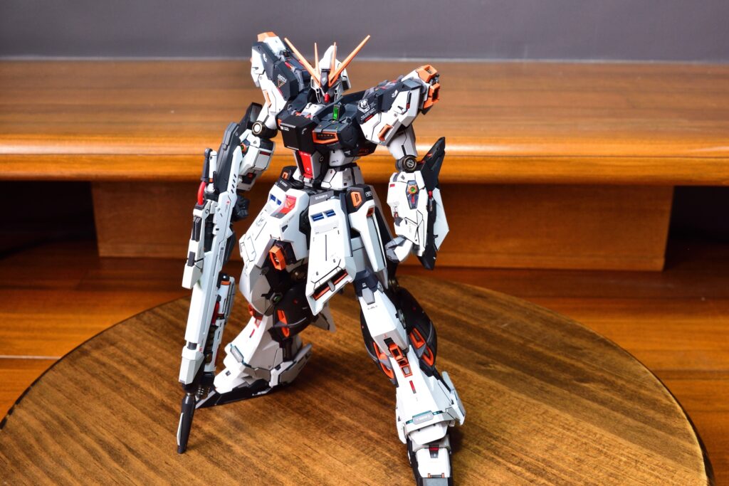 今回初めてRG HI-νガンダムを手に入れ、仮組みを進める中で、ディテールの細かさ、密度感、可動性能、組み立てやすさなど、すべての点において感動しました。素立ちの状態でも抜群にかっこよく、スタイル改修をせずとも程よいS字立ちが実現しています。まさに「バンダイ驚異の技術力」を体感できるキットです! - MGキットとの違い
