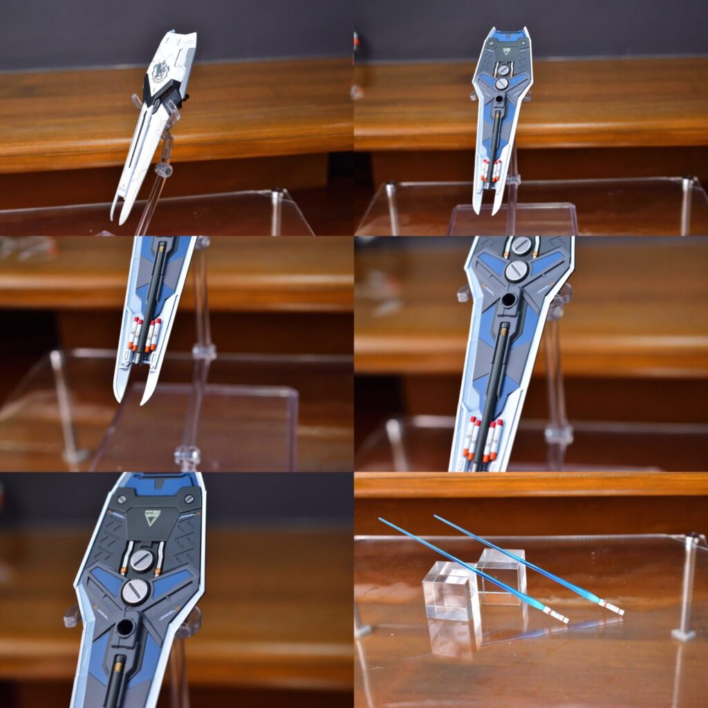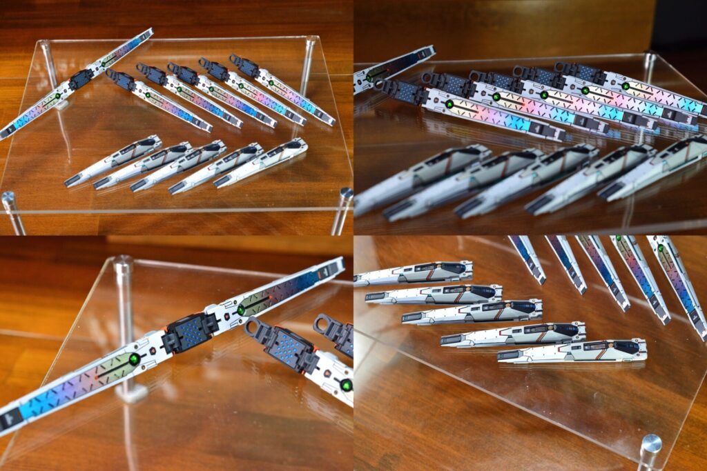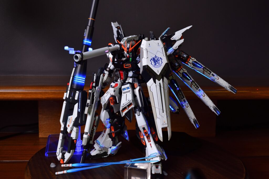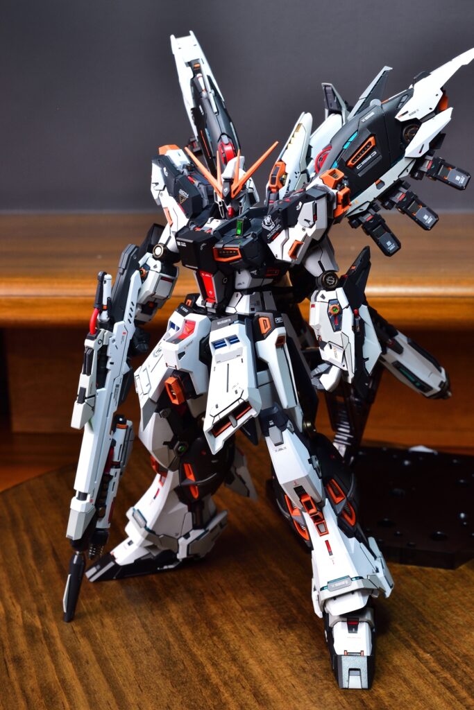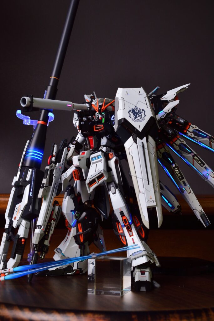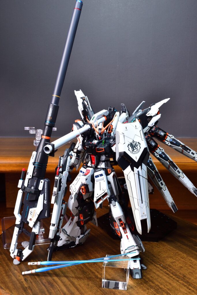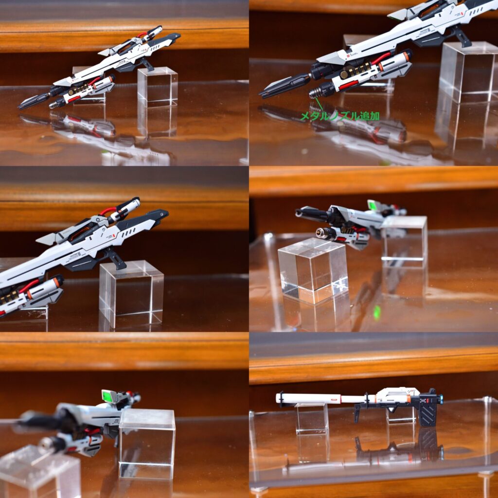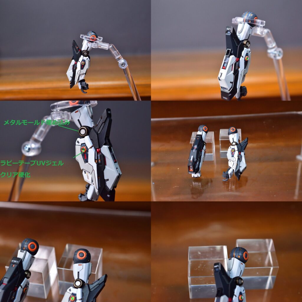 細かい改造箇所やこだわりポイントは画像に記載しておりますので、そちらをご覧ください。特にファンネルやプロペラントタンクのアレンジ、蛍光塗装による発光表現など、ぜひ細部をお楽しみください!