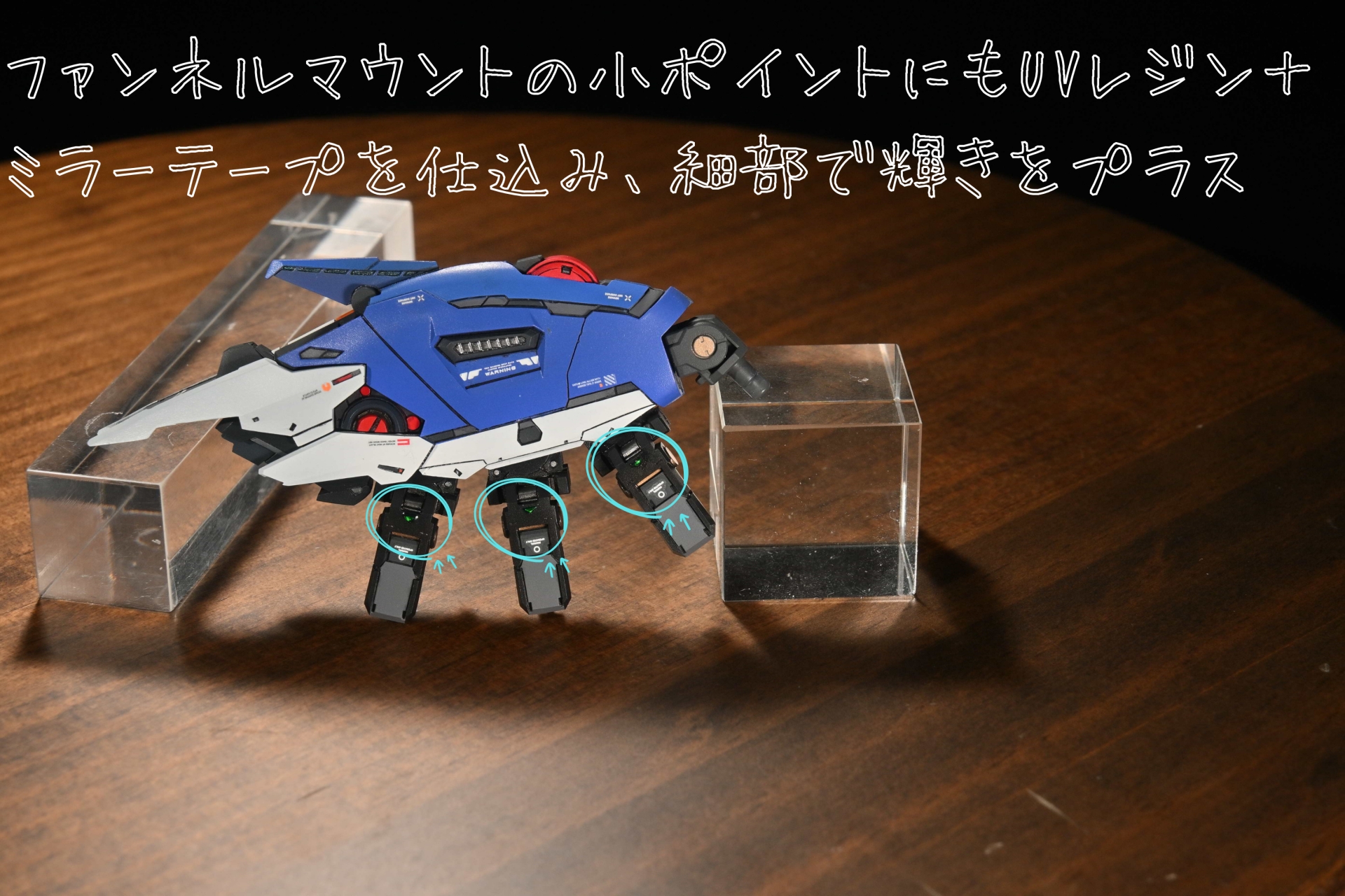 リアスカートにはUVレジン+ミラーテープで小さな光のアクセントを追加