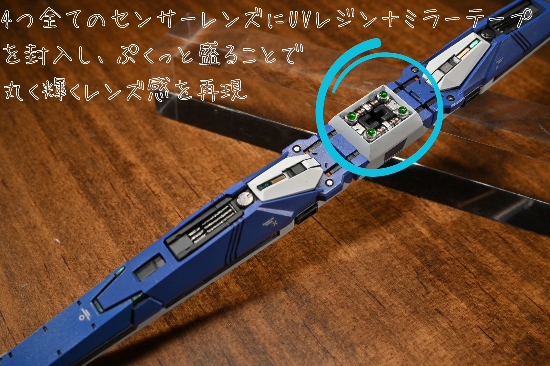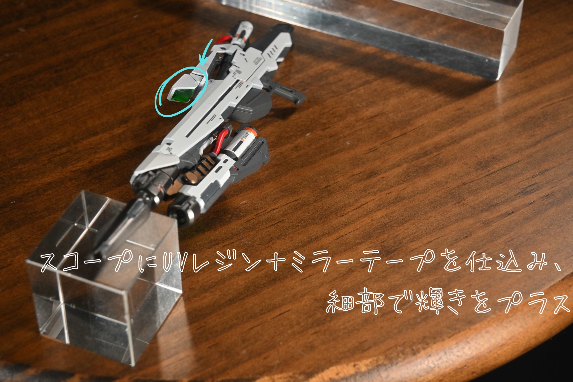 スコープレンズにはUVレジンで光らせポイントを仕込み