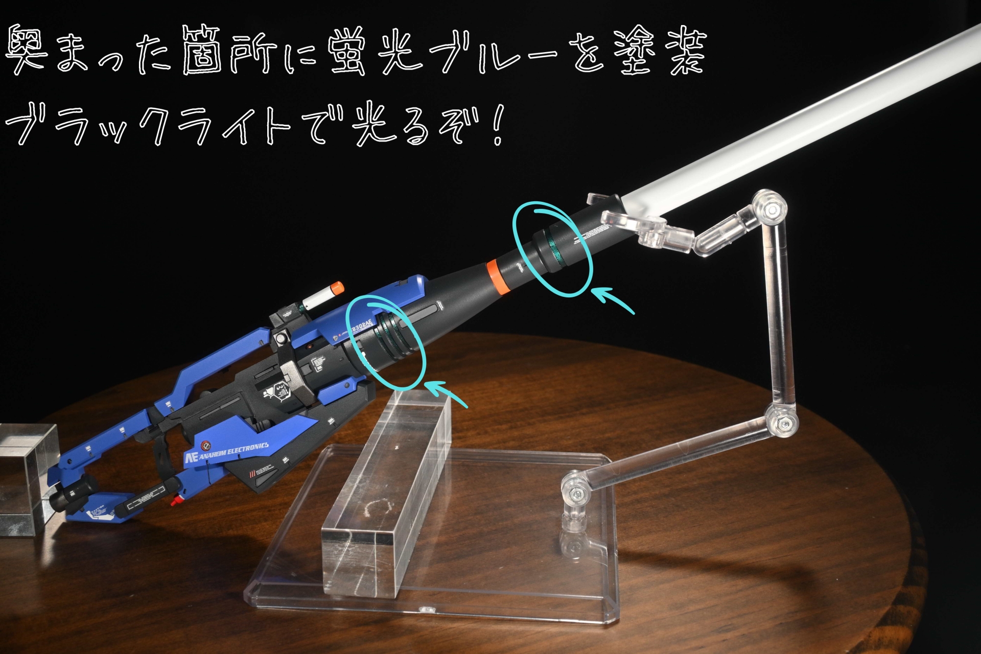 バズーカのスコープレンズにもUVレジンで光らせポイントを仕込み