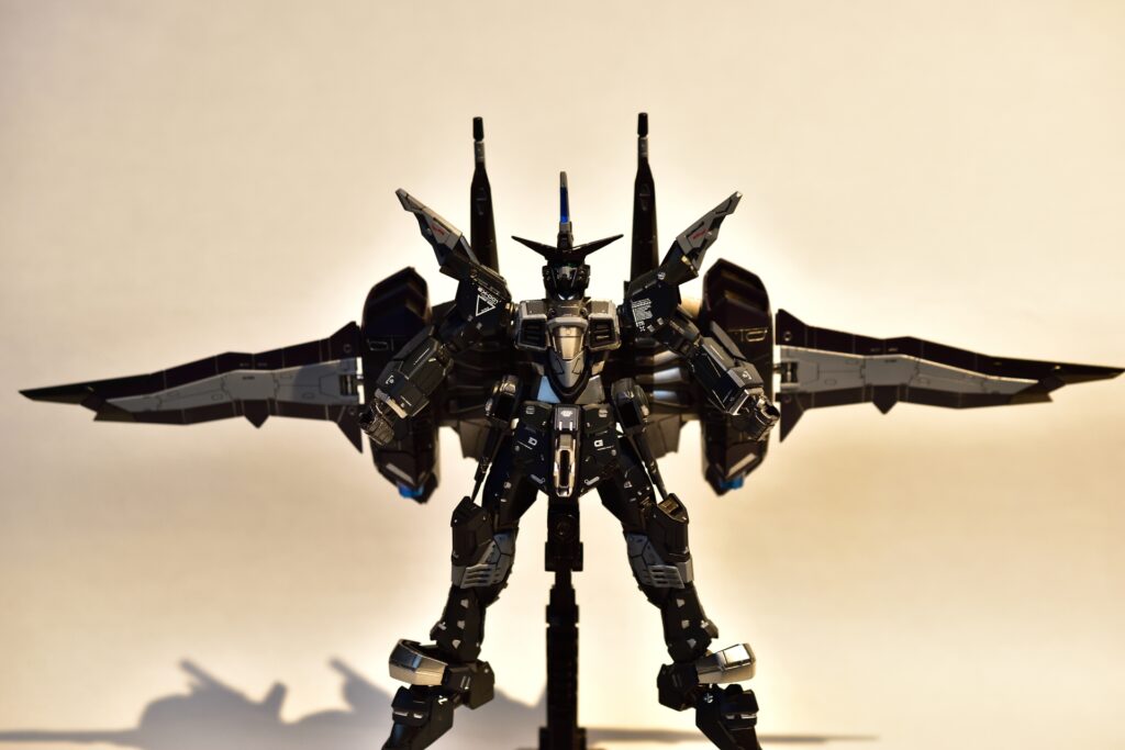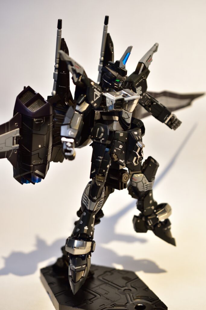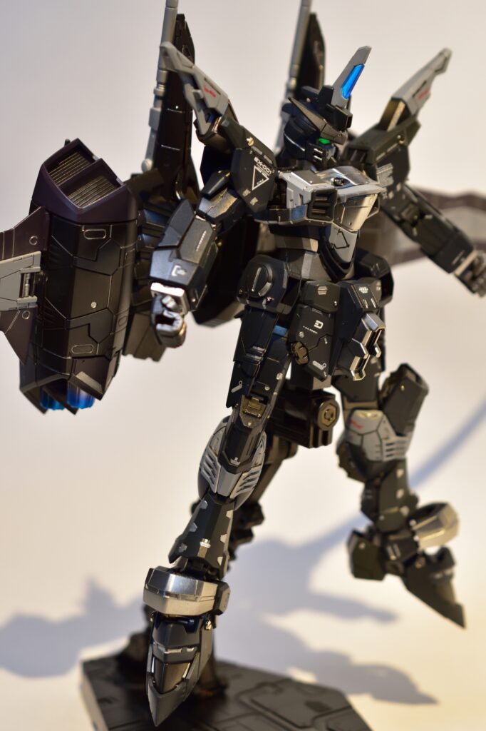 - 全塗装と各所の塗り分け:ブラックをベースにし、グレーやシルバーを使って細かく塗り分けている点が非常に魅力的です。特にメタリックの効果が光っています。