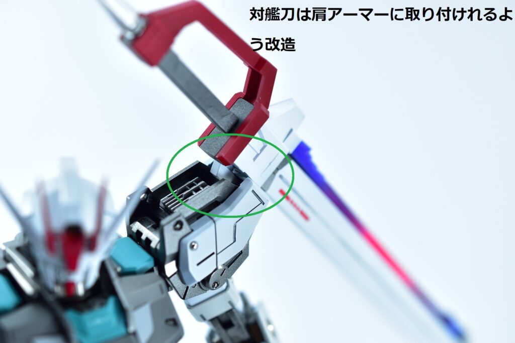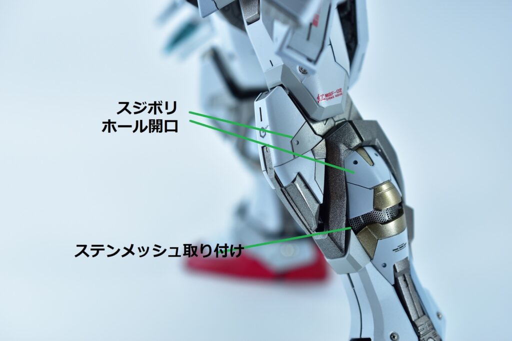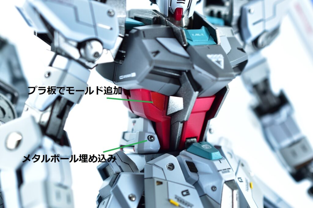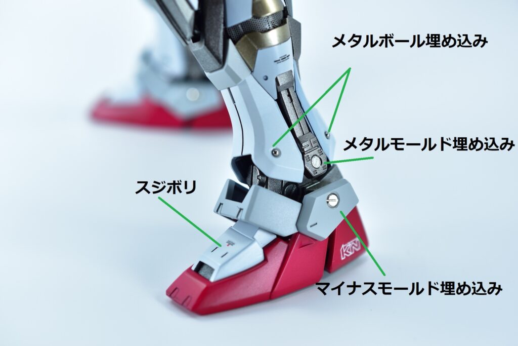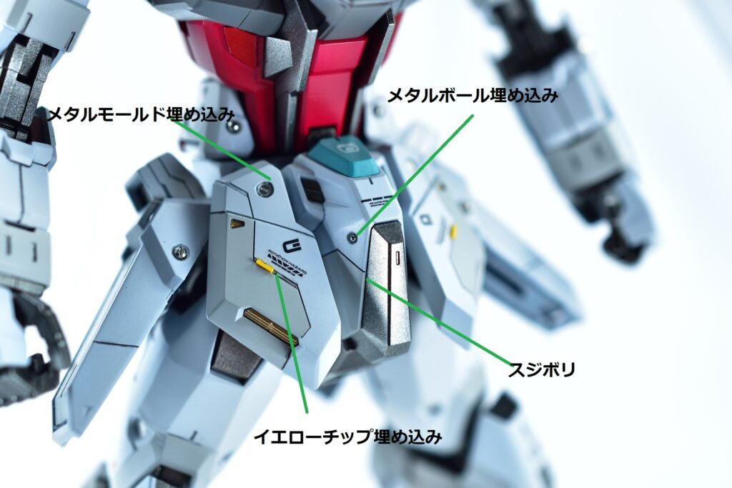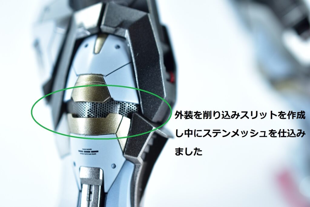 • スジボリは0.2~0.8ミリの幅で使い分け、細かいディテールを加え、武装部分の存在感を増しました。