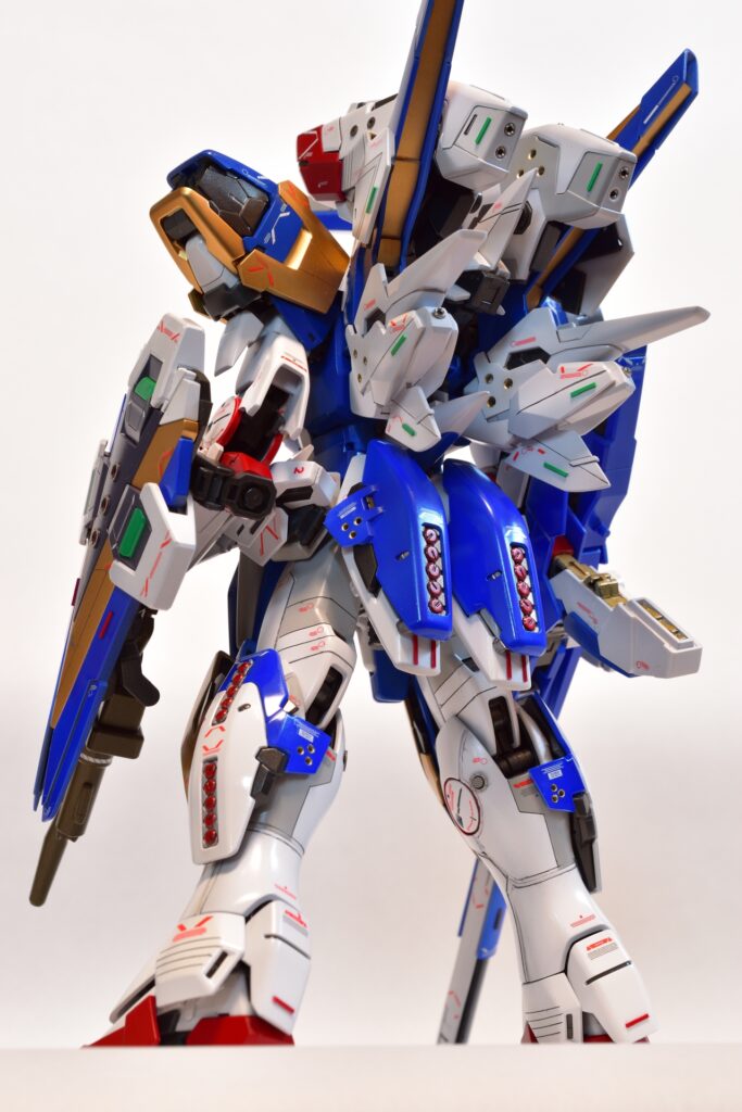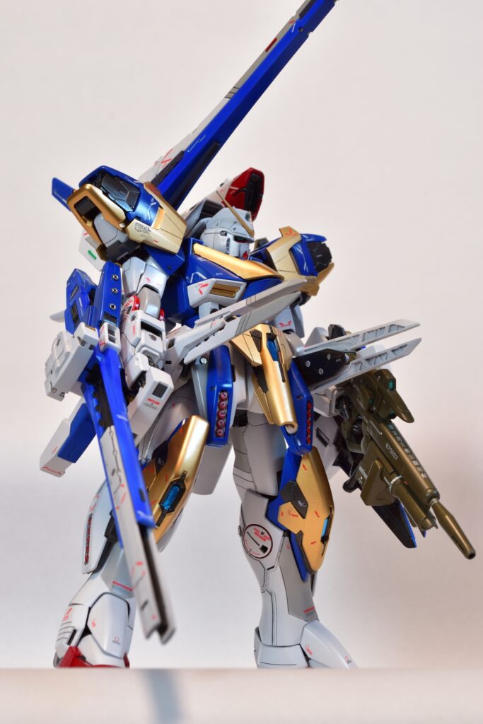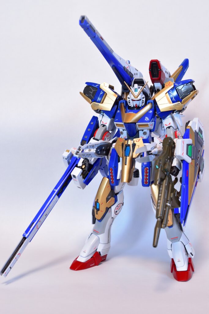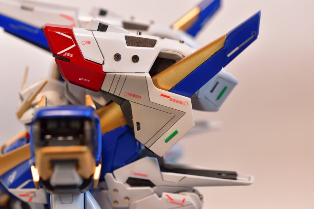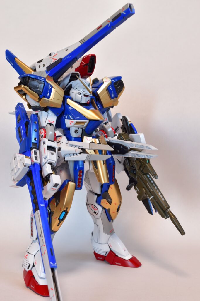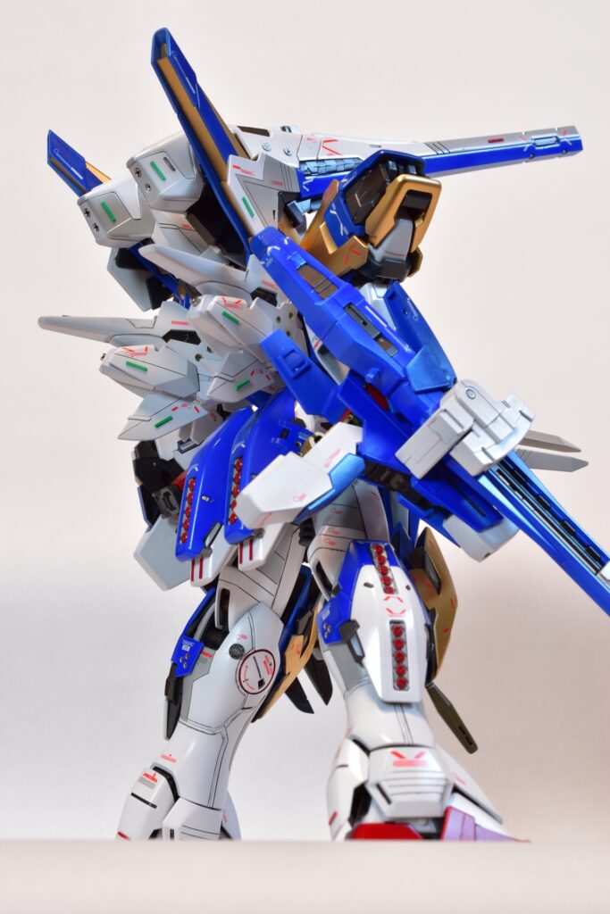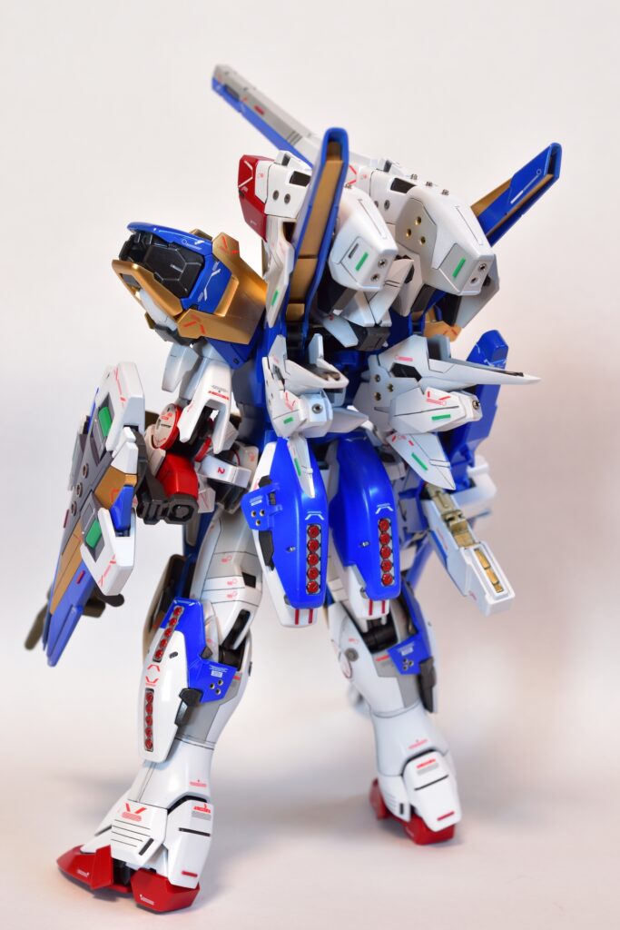 今回は、V2アサルトバスターガンダムVer.Kaの改修を行いました。製作途中の写真は撮り忘れてしまいましたが、地道に制作を進めてきました。今回は全塗装を行い、ディテールアップを施しました。カラーはキットのほぼ再現を目指し、細部にこだわって仕上げています。