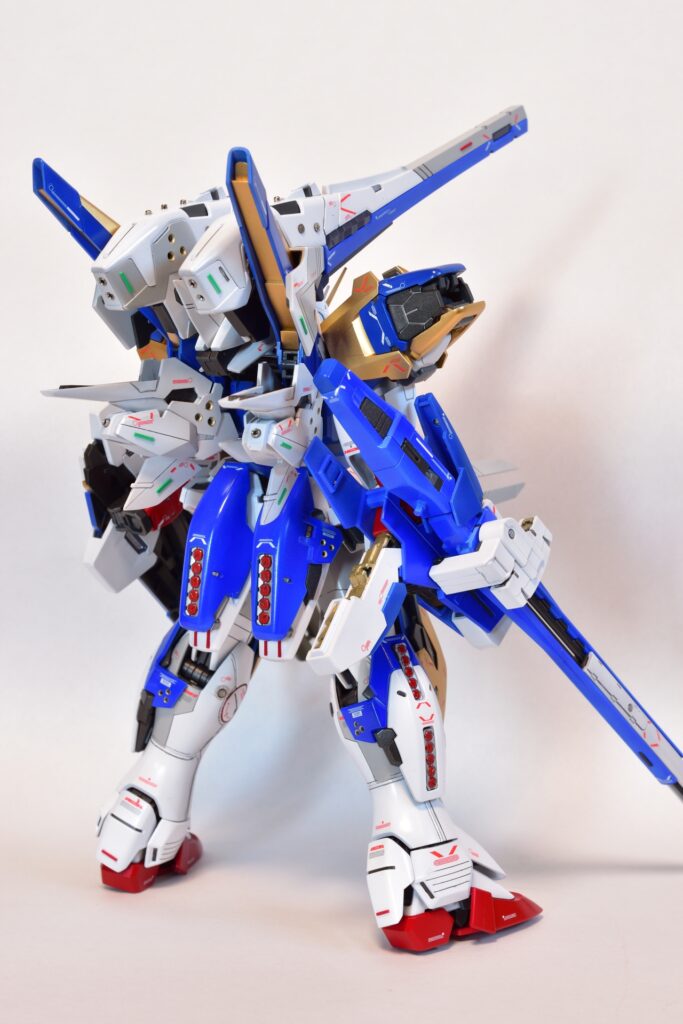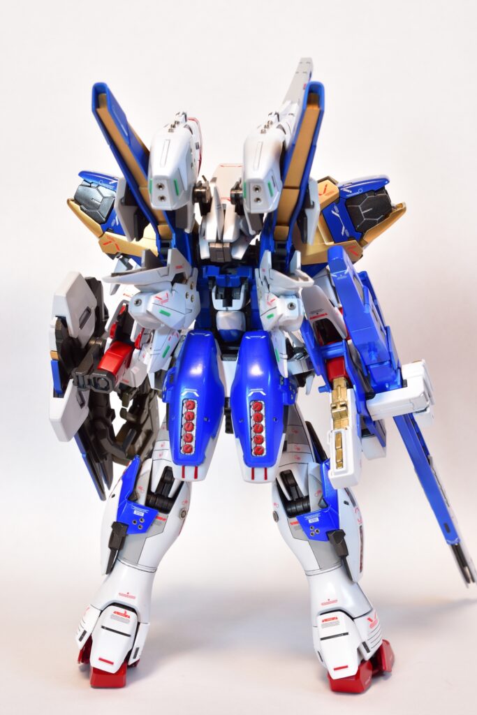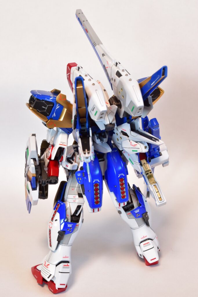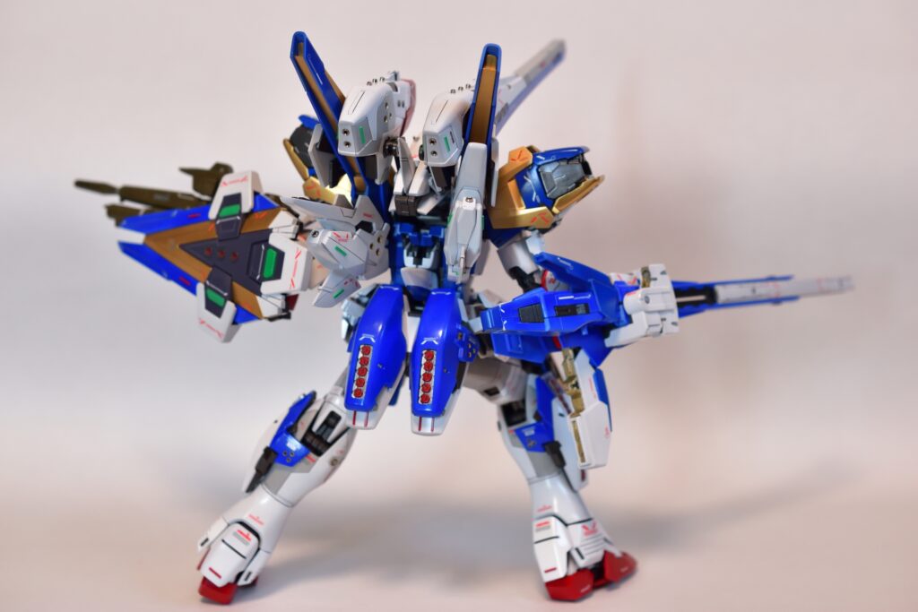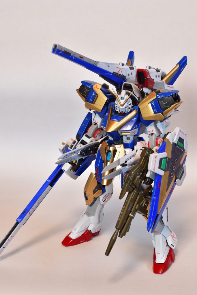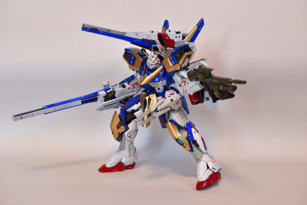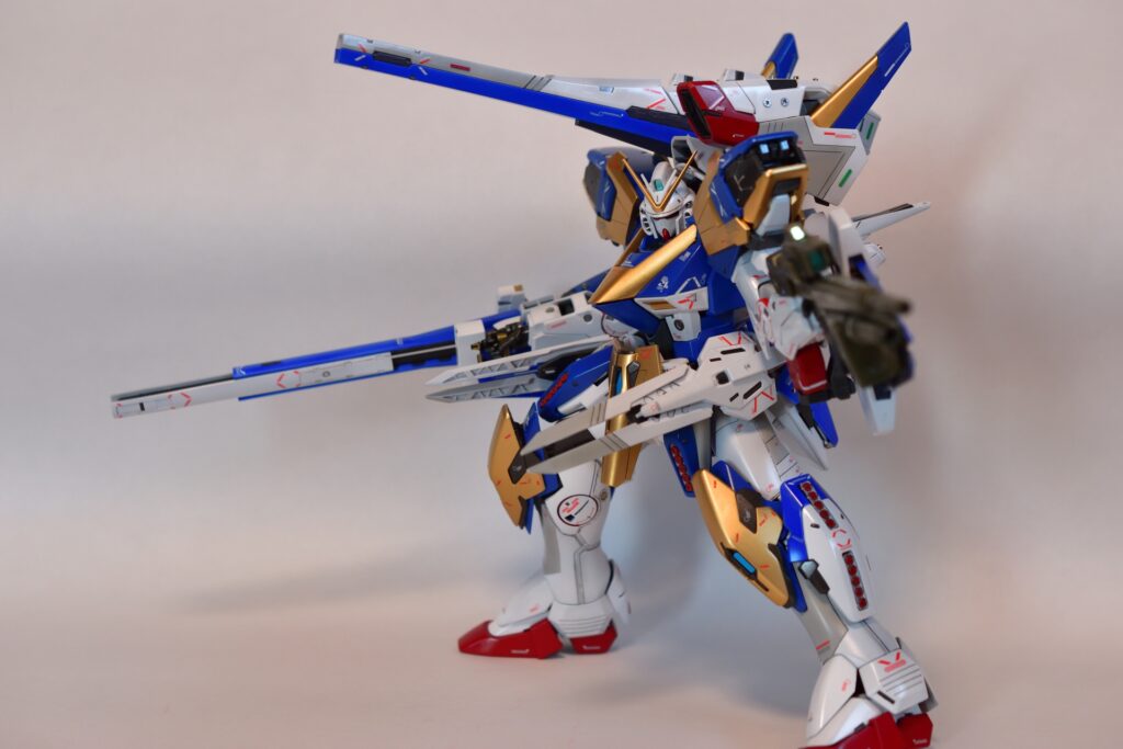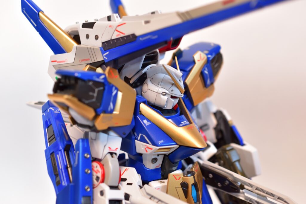 今回は、V2アサルトバスターガンダムVer.Kaの改修を行いました。製作途中の写真は撮り忘れてしまいましたが、地道に制作を進めてきました。今回は全塗装を行い、ディテールアップを施しました。カラーはキットのほぼ再現を目指し、細部にこだわって仕上げています。